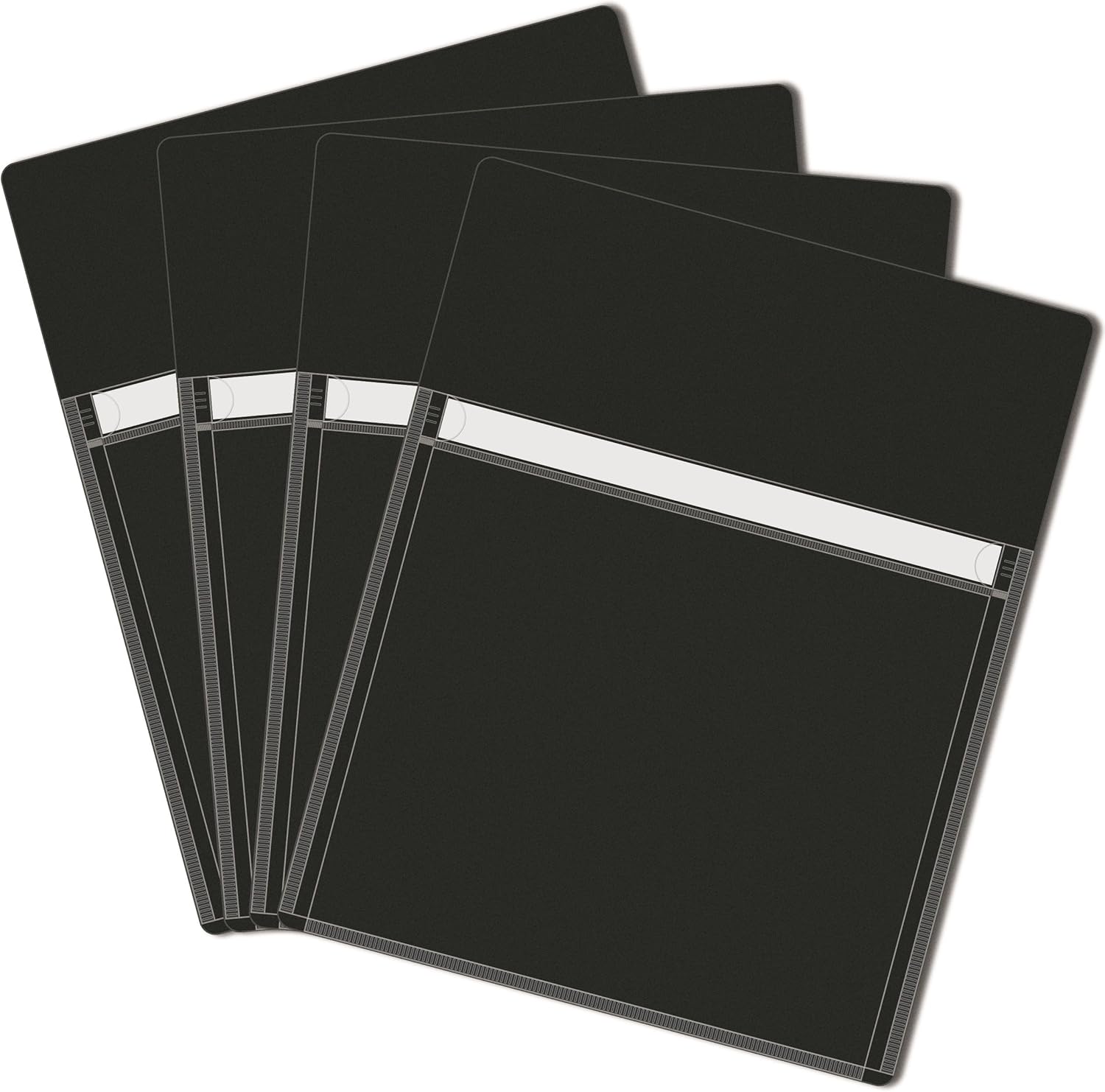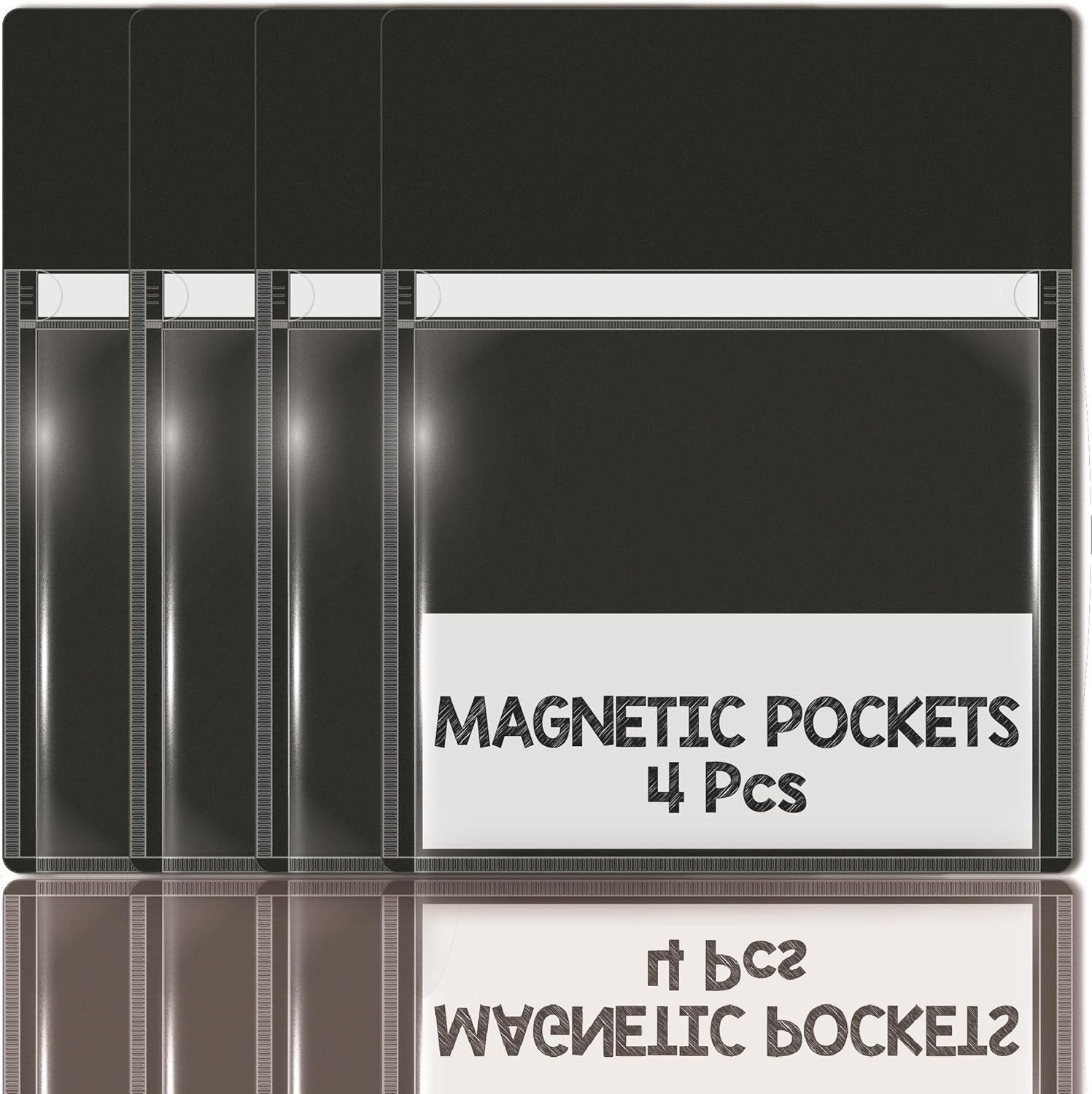 Magnetic Pocket 4 Pack – Self-Adhesive Magnetic Storage Pouch for Documents, Notes & Tools, Strong Magnet Backing for Fridge, Whiteboards, and Metal Surfaces (Black 4Pcs)