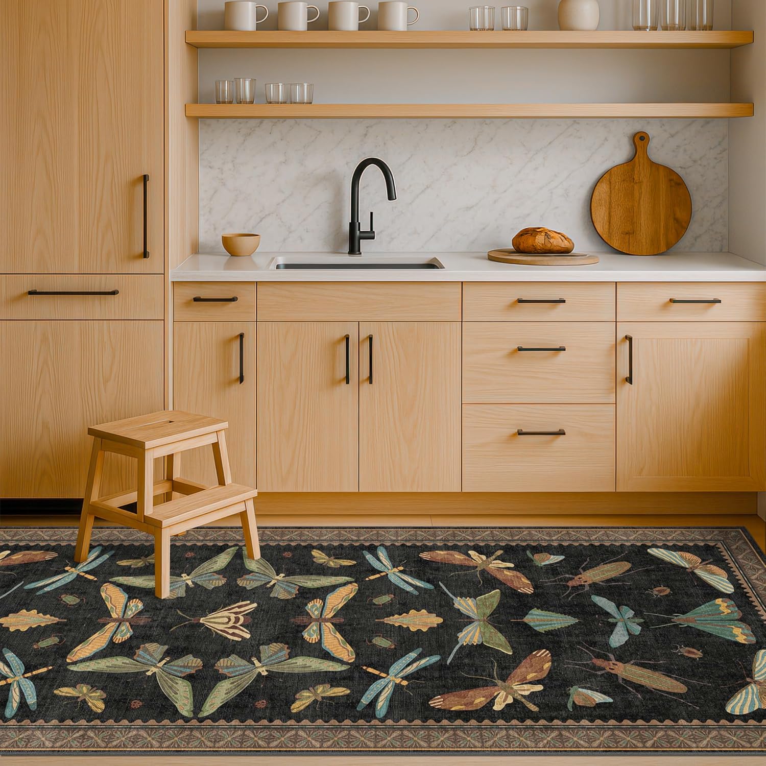 2x6 Black Entryway Runner Rugs Washable Non Slip Runners for Hallway, Kitchen, Mudroom, Laundry Room, Stain Resistant Ultra Soft Non Skid, Nature Insect Fantasy Whimsical Indoor Decor