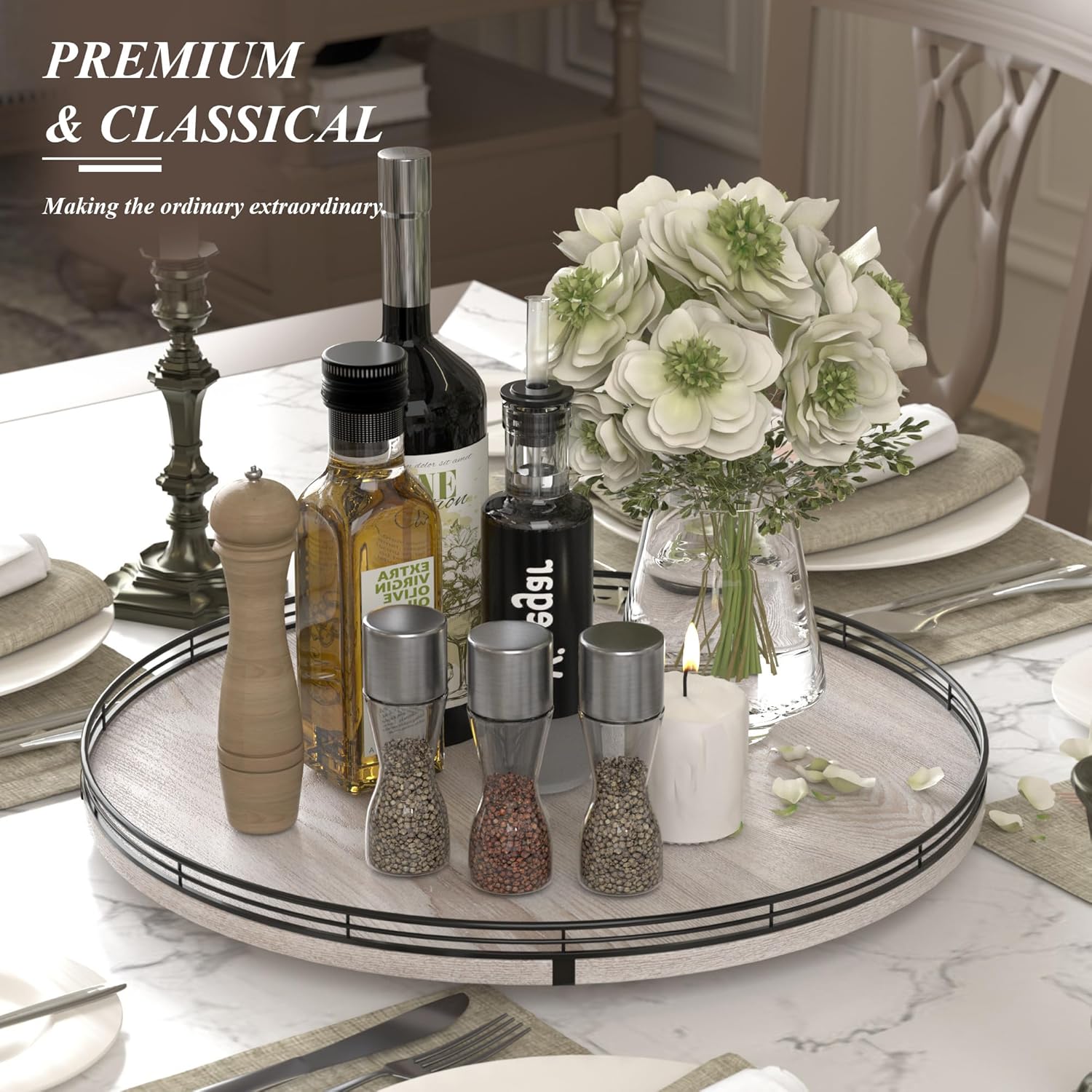 18" Lazy Susan Wood Turntable Organizer for Kitchen Decor, Farmhouse Round Wooden Lazy Susan Organization and Storage for Cabinet, Dining Table, Pantry, Bathroom, Countertop, Centerpiece, Home Decor