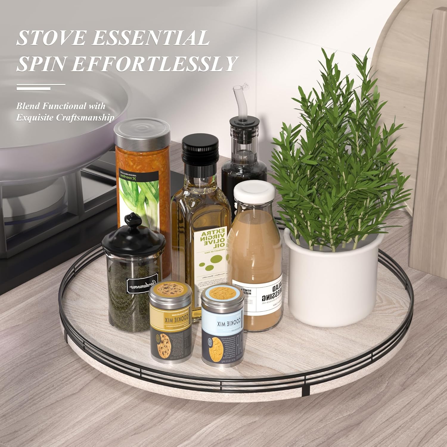 • 360 RATATING & MAXIMIZE SPACE: The base is made of solid wood and the spinning mechanism is made of steel ball bearings, which are well-built and allow for 360° smoothly spin. Making it super easy to access items at the back of your cabinet without having to remove everything in front. You can use it to store spices, condiments, and even small jars, and it keeps everything neatly in place.