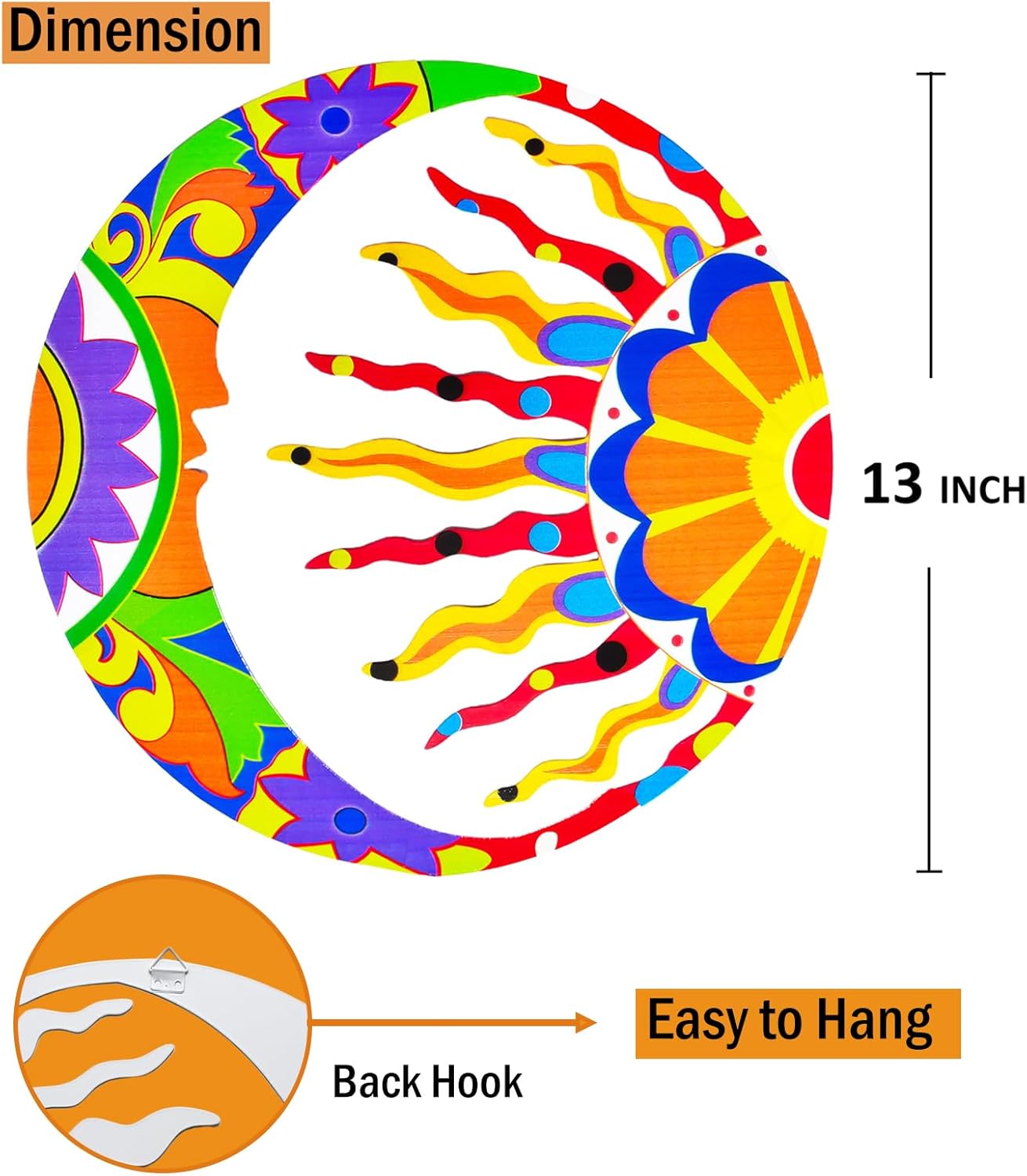• Unique Design:Our sun-and-moon metal wall art is a statement piece, featuring the sun on one side and the moon on the other. Drawing inspiration from Mexican Talavera pottery, it captures all the charm and vivid colors of Talavera, yet eliminates the worry of breakage.