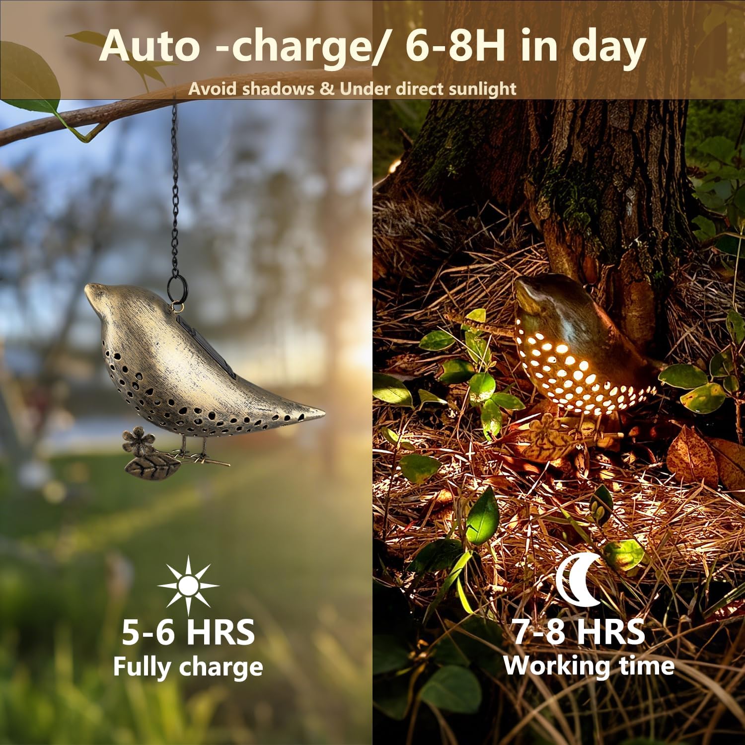• Solar powered Bird Ornaments for Outdside Elegance These bird outdoor furniture elevate summer soirees,rooftop parties and poolside lounges.Ideal for sisters,granddaughters and garden bloggers,they shine during Easter,Mother’s Day, and Diwali,casting a gentle glow on garden arbors,pool decks, and pergola beams.Their warm finish and weatherproof build blend art with functionality,perfect for both daily decor and festive occasions.