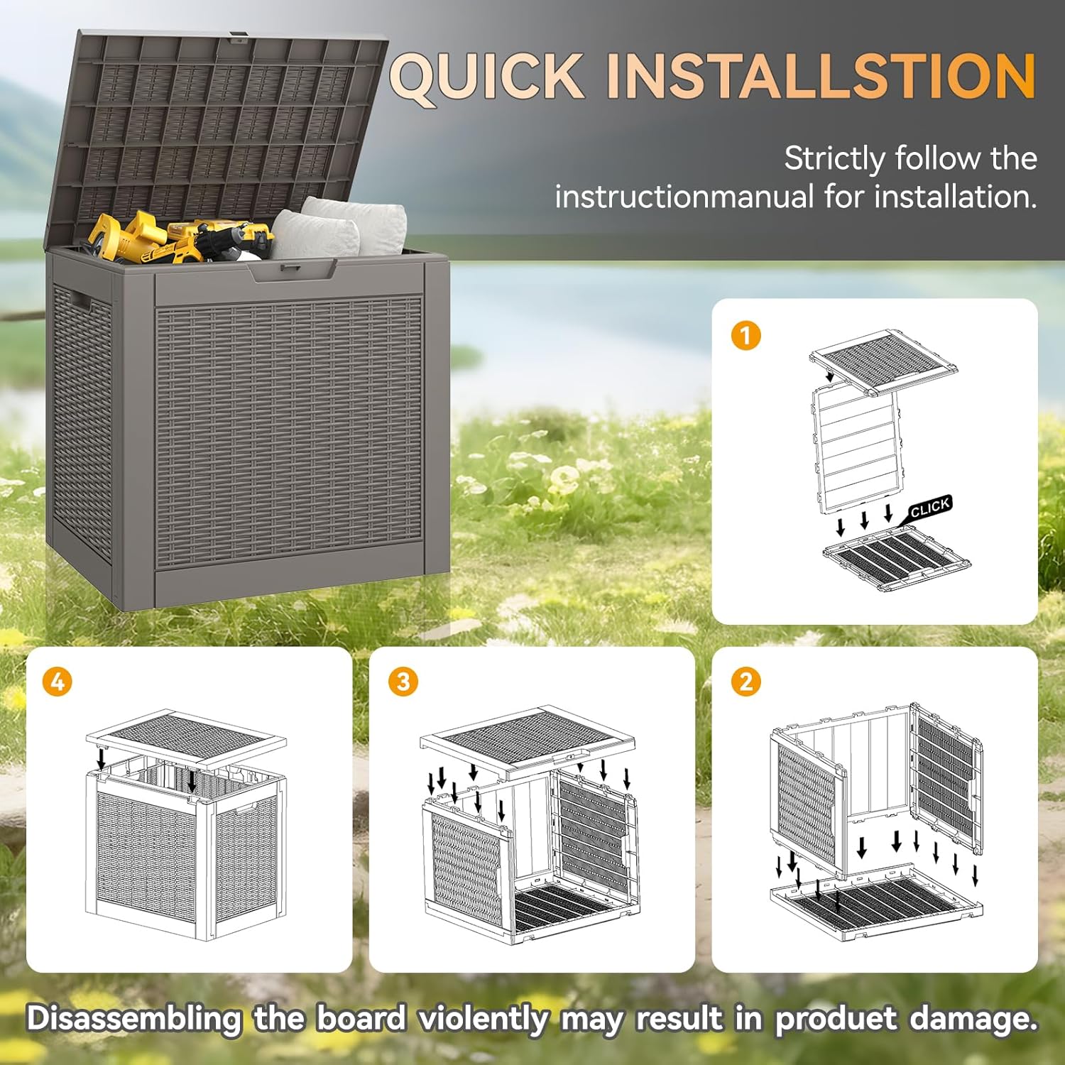 • Deck Boxes Outdoor Waterproof: Designed as a waterproof storage solution, this deck box protects your belongings from moisture and ensures they stay dry even during heavy rain. The lockable lid adds an extra layer of security, keeping your valuables safe from theft or damage.
