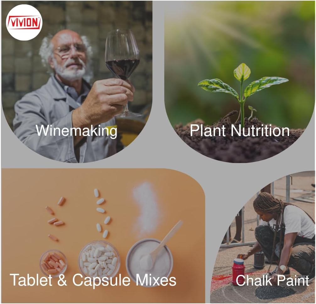 • Wine Pre-Ferment and Beer Brewing Treatment: Effective substitute for double salts deacidification method during vinification (winemaking). Reacts with tartaric and malic acid to lower grape must and wine acidity. Raises mash pH and adjusts soft water to home brew beers including English stouts and pale ales.