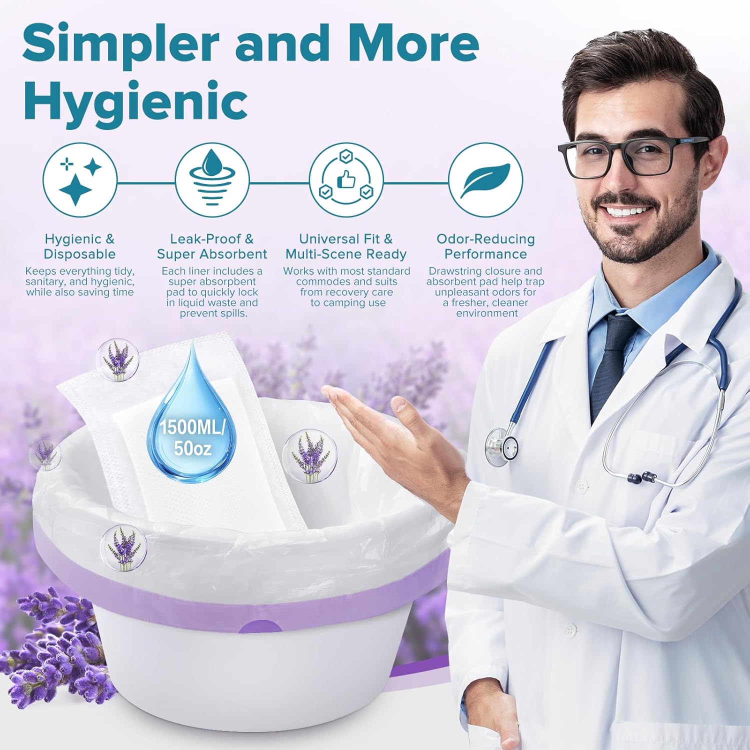 • 1500ml Ultra-Absorbent Bedside Commode Pads: Made with Japanese-imported SAP (Super Absorbent Polymer) and natural wood pulp, these pads instantly absorb urine, vomit, or other liquid waste without splashes and reducing odors. Then, turns up to 50 oz/1500 ml liquid into gel within seconds —no leaks, no backflow, keeping skin dry and comfortable.