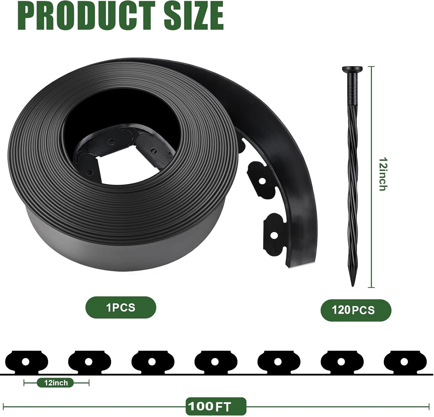 • What You Get: Includes a 100-foot-long, 4-inch-high roll of lawn edging and landscape border, complete with 120 spikes. Providing everything you need for a neat and tidy look.