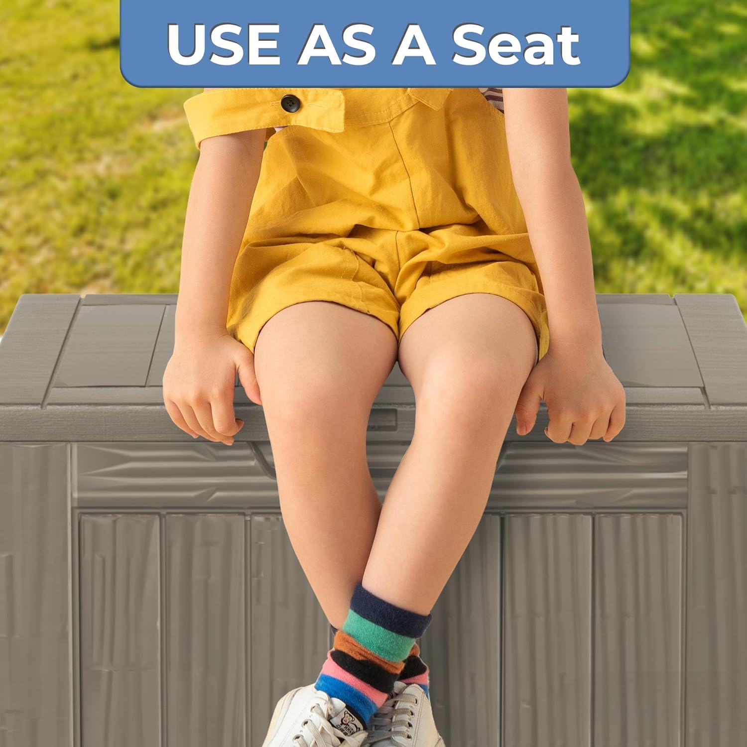 • Functional for Everyday Use. Features a reinforced lid and built-in handles for added convenience. The lockable design helps keep your items safe from weather and pets, making it A practical small outdoor bin.
