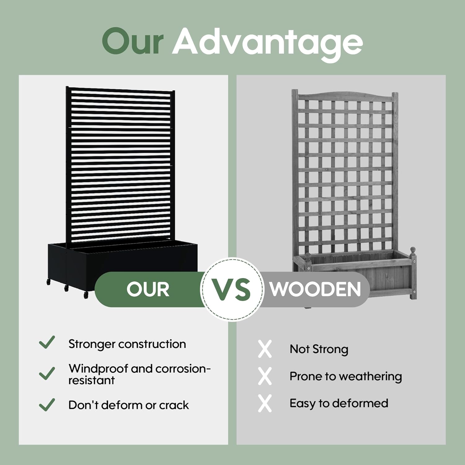 • Versatile Design--This metal planter with trellis serves triple purposes as an elevated garden bed for flowers/plants, a sturdy trellis for climbing flora, or a stylish privacy screen to enhance outdoor living spaces. Its adaptable structure makes it the ultimate gardening solution for diverse needs.