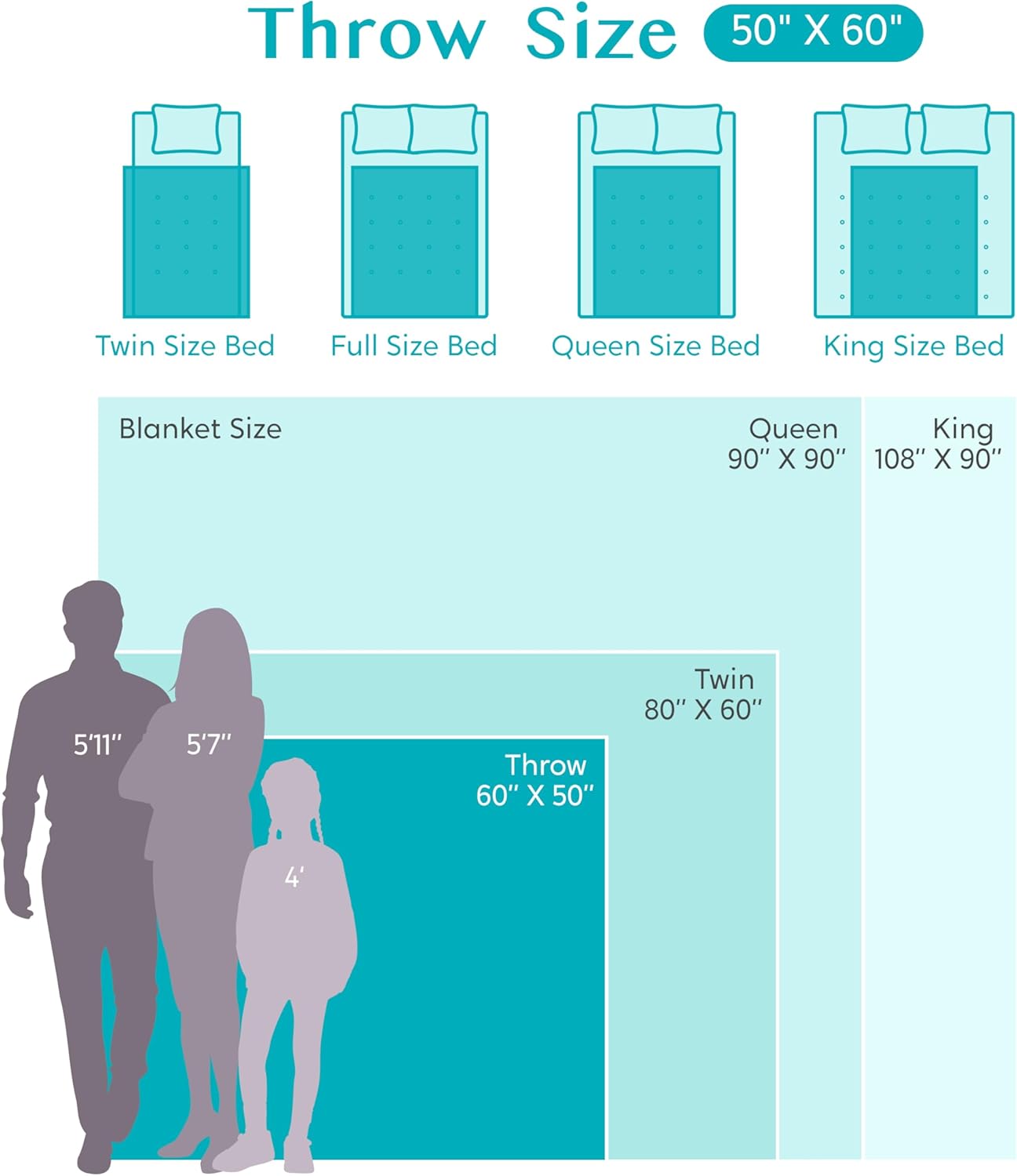 • All-Season Comfort in Every Size: Choose your size from 50”x60” (2 lb), 50”x70” (2.4 lb), 60”x80” (3.3 lb). Lightweight yet, it’s made for every season—from chilly summer nights to full winter mode. Drape it over your office chair, toss it in the car, or bring it along for picnics—it’s cozy comfort wherever you go.
