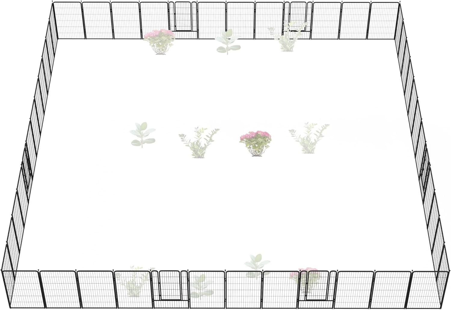 FXW Garden Fence Outdoor for The Yard – 45in(H) x 107.1ft(L) Heavy Duty Metal Animal Barrier for Dog and Rabbit, Decorative Dog Fence, 48 Panels, Black