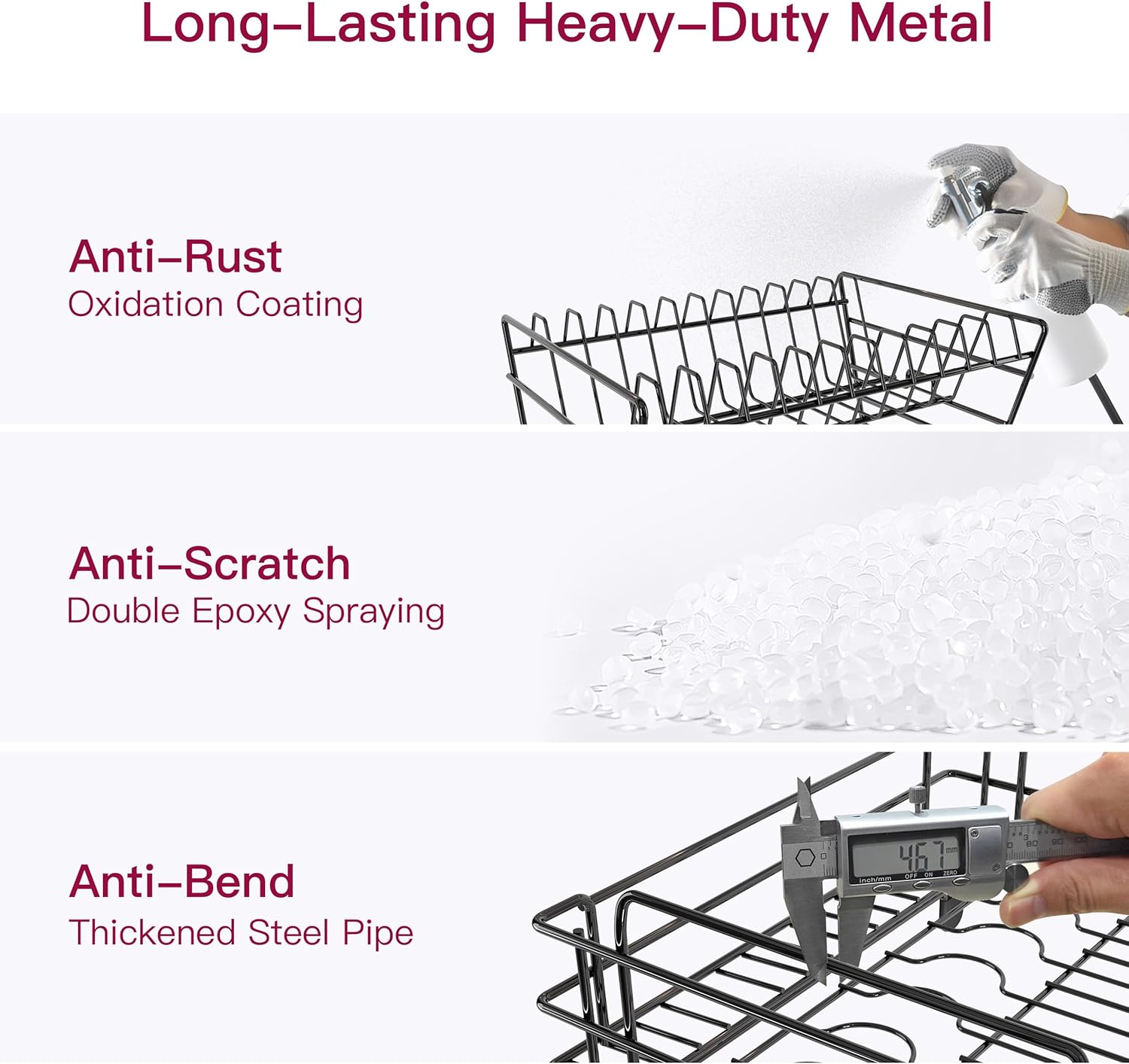 • 🔩 Rust-Resistant & Heavy-Duty Metal Dish Drying Rack: Durable metal dish drying rack with anti-oxidation coating. Withstands daily use—no bending, peeling, or wear over time