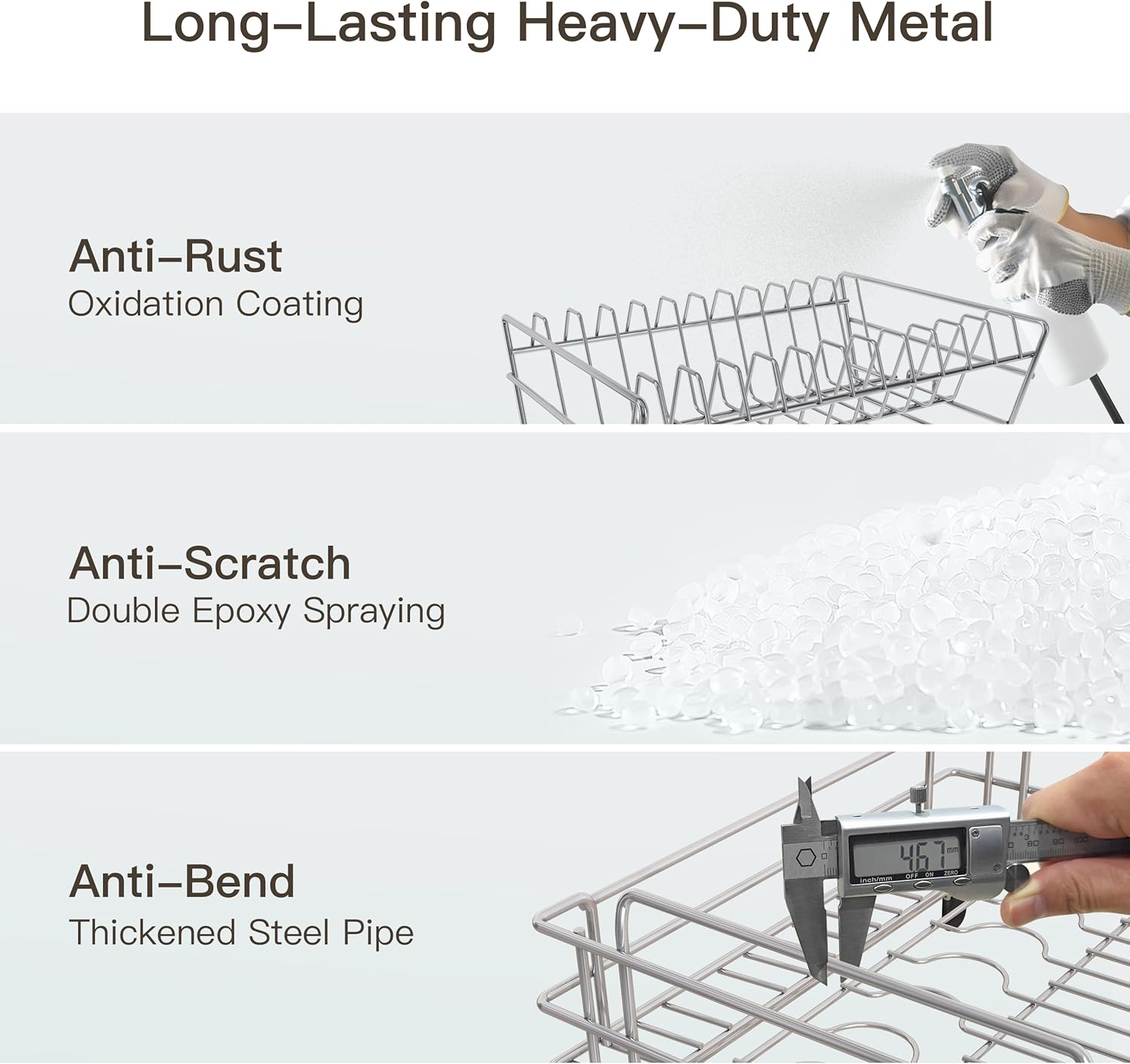 • 🔩 Rust-Resistant & Heavy-Duty Metal Dish Drying Rack: Durable metal dish drying rack with anti-oxidation coating. Withstands daily use—no bending, peeling, or wear over time