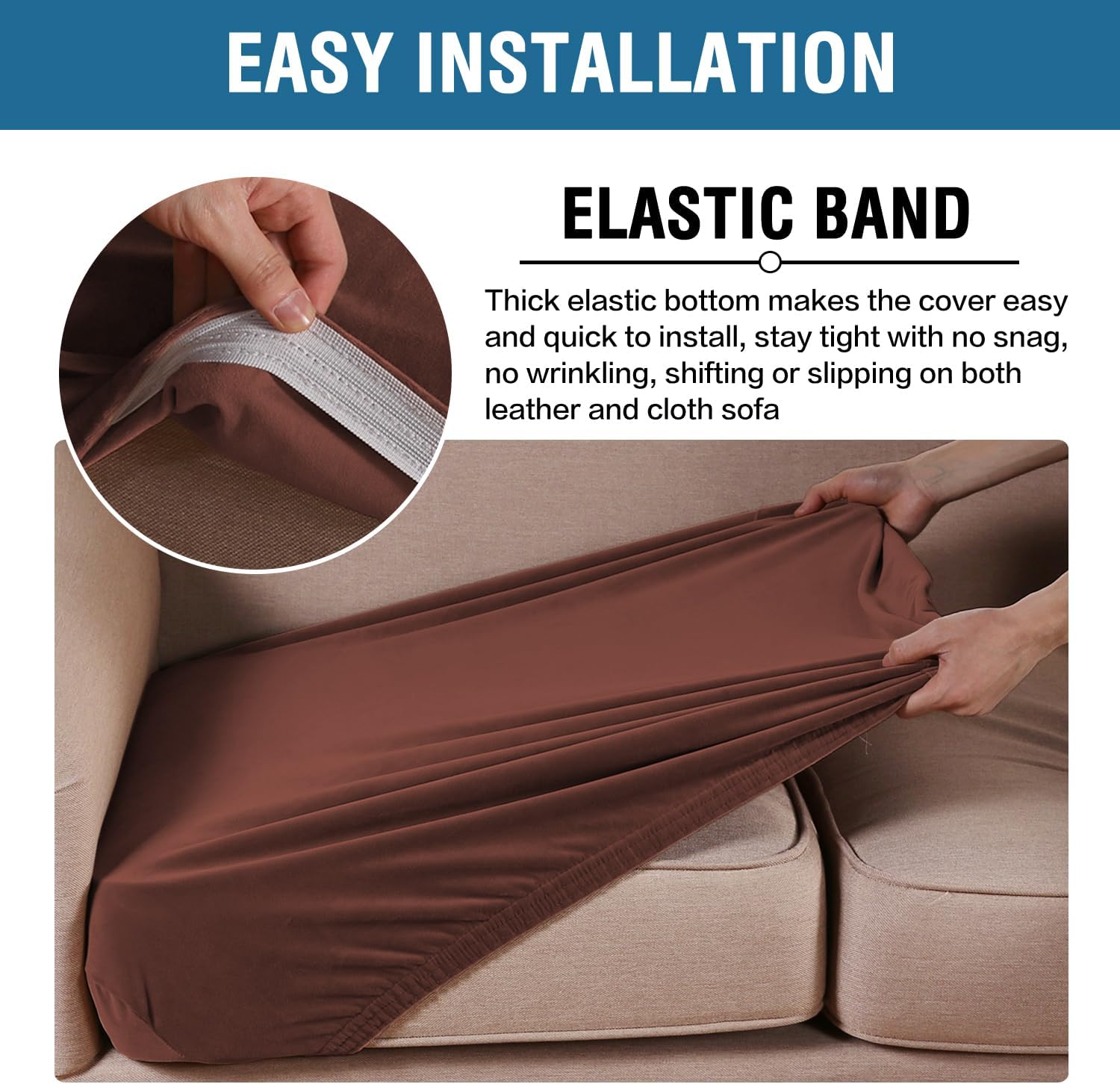 • STAY IN PLACE: Featuring non-skid thick elastic bottom, our cushion slipcover can stay tight with no snag, no wrinkling, shifting or slipping on both leather and cloth sofa. Check the installation guide carefully, it can be finished within 3 minutes by one person. It is very easy to put on and take down. (Installation Instructions Included)