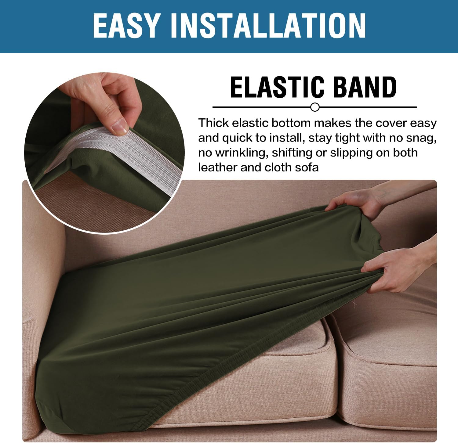 • STAY IN PLACE: Featuring non-skid thick elastic bottom, our cushion slipcover can stay tight with no snag, no wrinkling, shifting or slipping on both leather and cloth sofa. Check the installation guide carefully, it can be finished within 3 minutes by one person. It is very easy to put on and take down. (Installation Instructions Included)