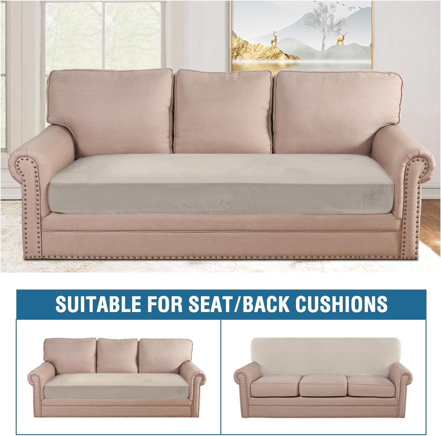• GREAT FIT: Sofa Seat Cover(fit total sitting area between 60-76 inches). Feature one-size-fits-most, kindly measure before ordering. Suitable for both T cushion and Box cushion styles