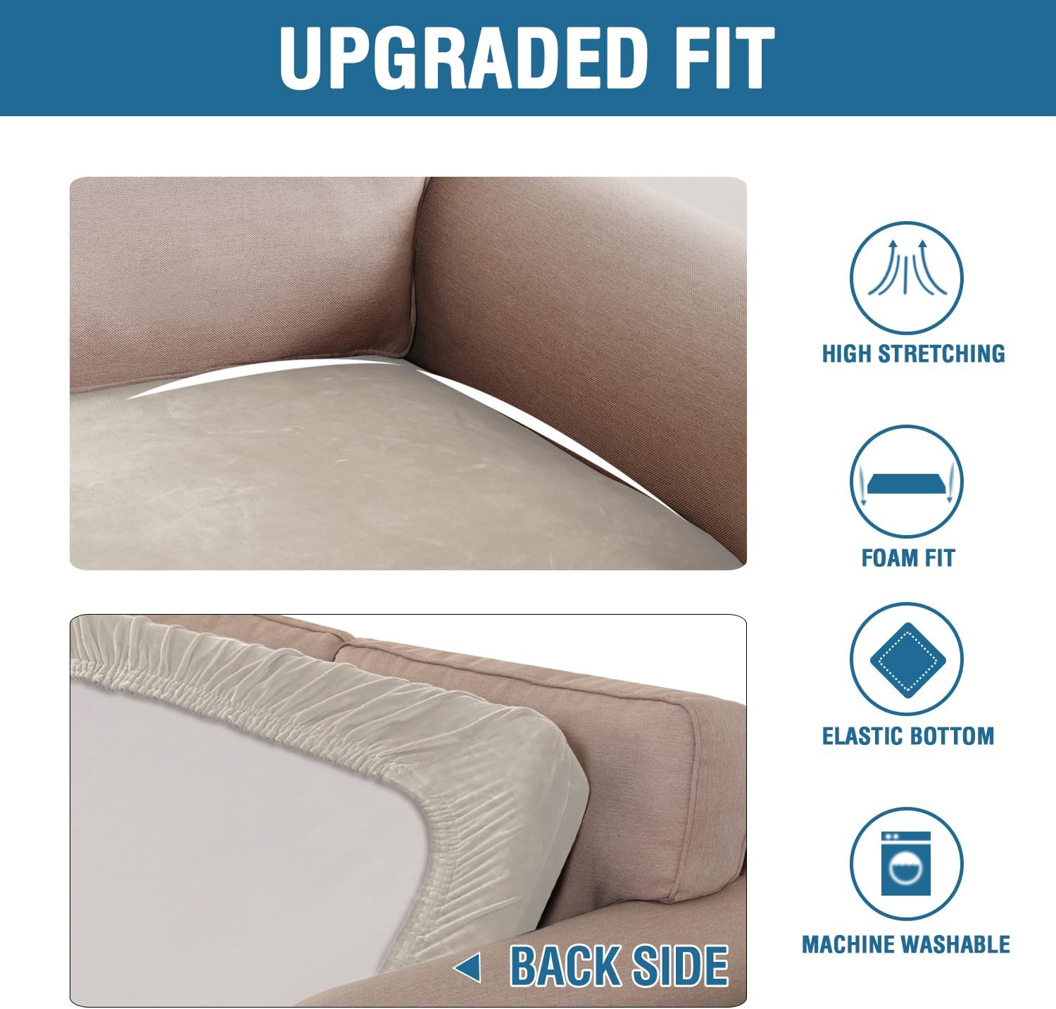• STAY IN PLACE: Featuring non-skid thick elastic bottom, our cushion slipcover can stay tight with no snag, no wrinkling, shifting or slipping on both leather and cloth sofa
