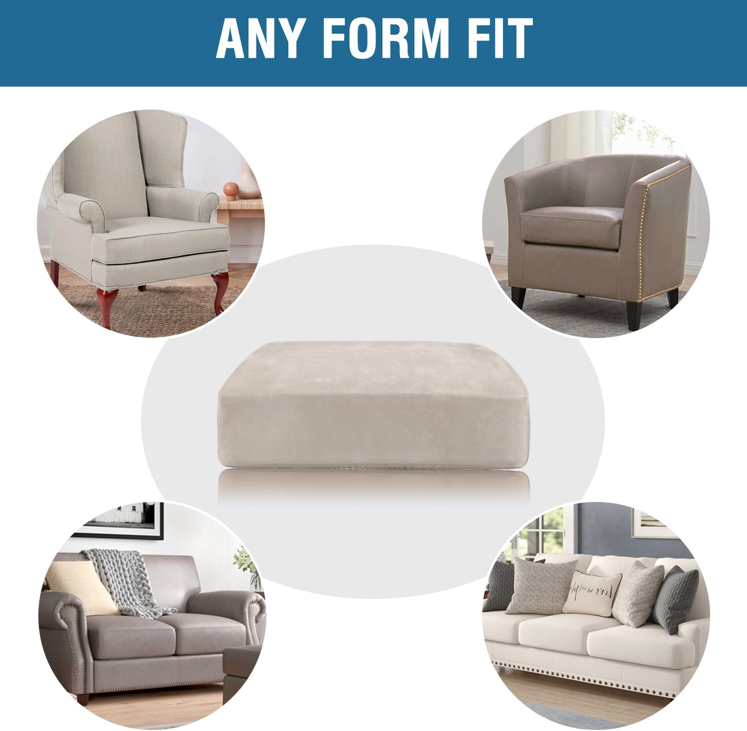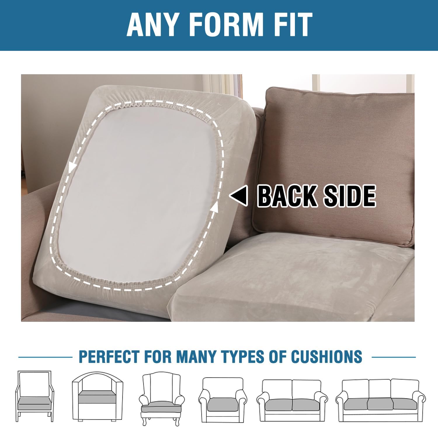 • ANY FORM FIT: Each cushion cover measures: 35-40" length, 21.6-30.5" width and 2-10" height. It's crafted from a unique extra stretchy fabric, perfect for regular square cushions, T-cushions and also L-cushions, used to cover not only the seat cushions of your sofa, but also the back cushions as long as they can be separated from the sofa