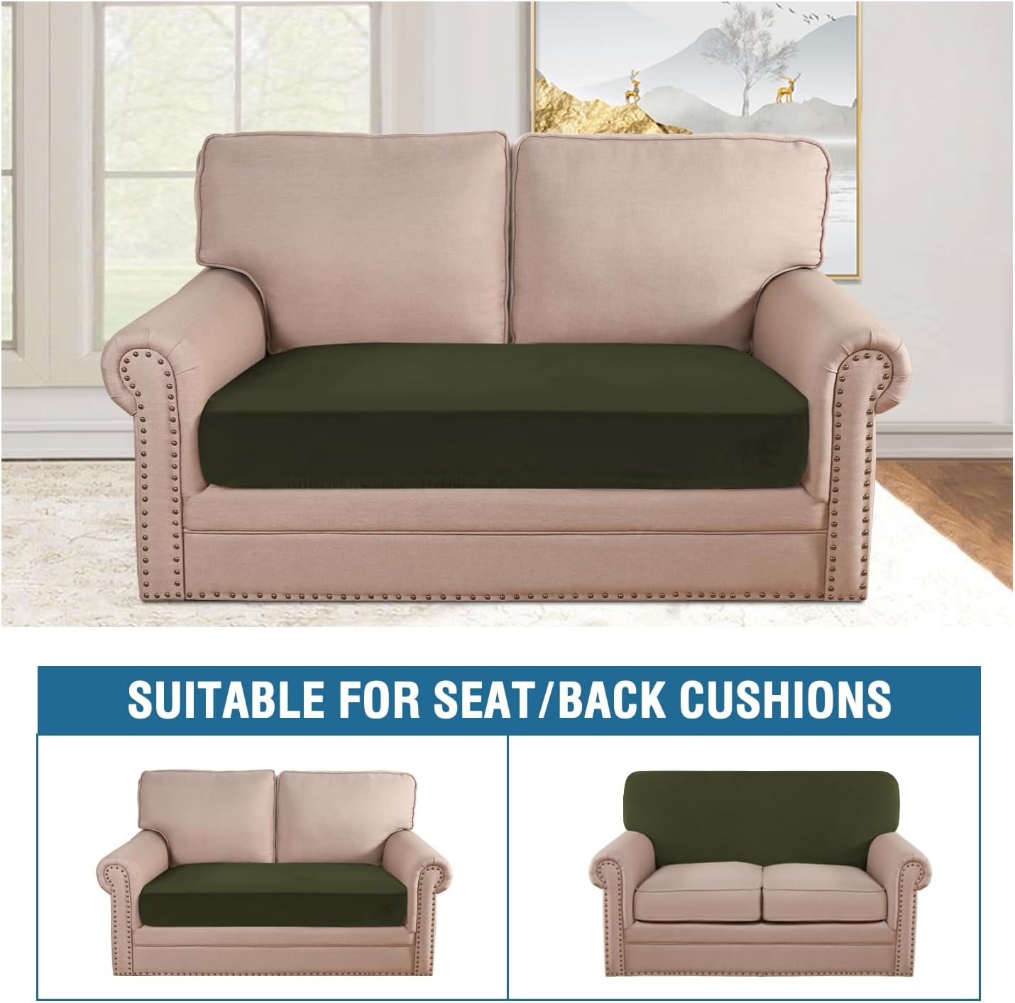 H.VERSAILTEX Velvet Stretch Individual Cushion Cover Plush Cushion Slipcover for Loveseat Sofa Furniture Protector Seat Cushion Sofa Cover (1 Piece Loveseat Cushion Cover, Olive)
