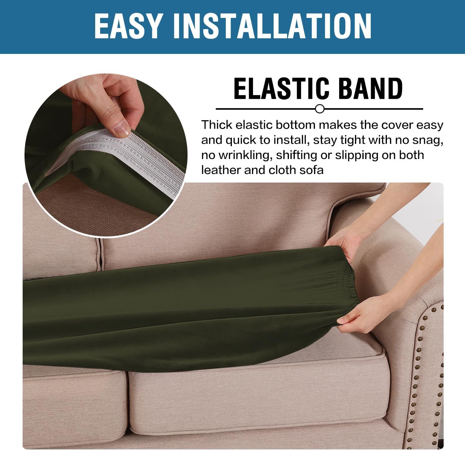 • STAY IN PLACE: Featuring non-skid thick elastic bottom, our cushion slipcover can stay tight with no snag, no wrinkling, shifting or slipping on both leather and cloth sofa