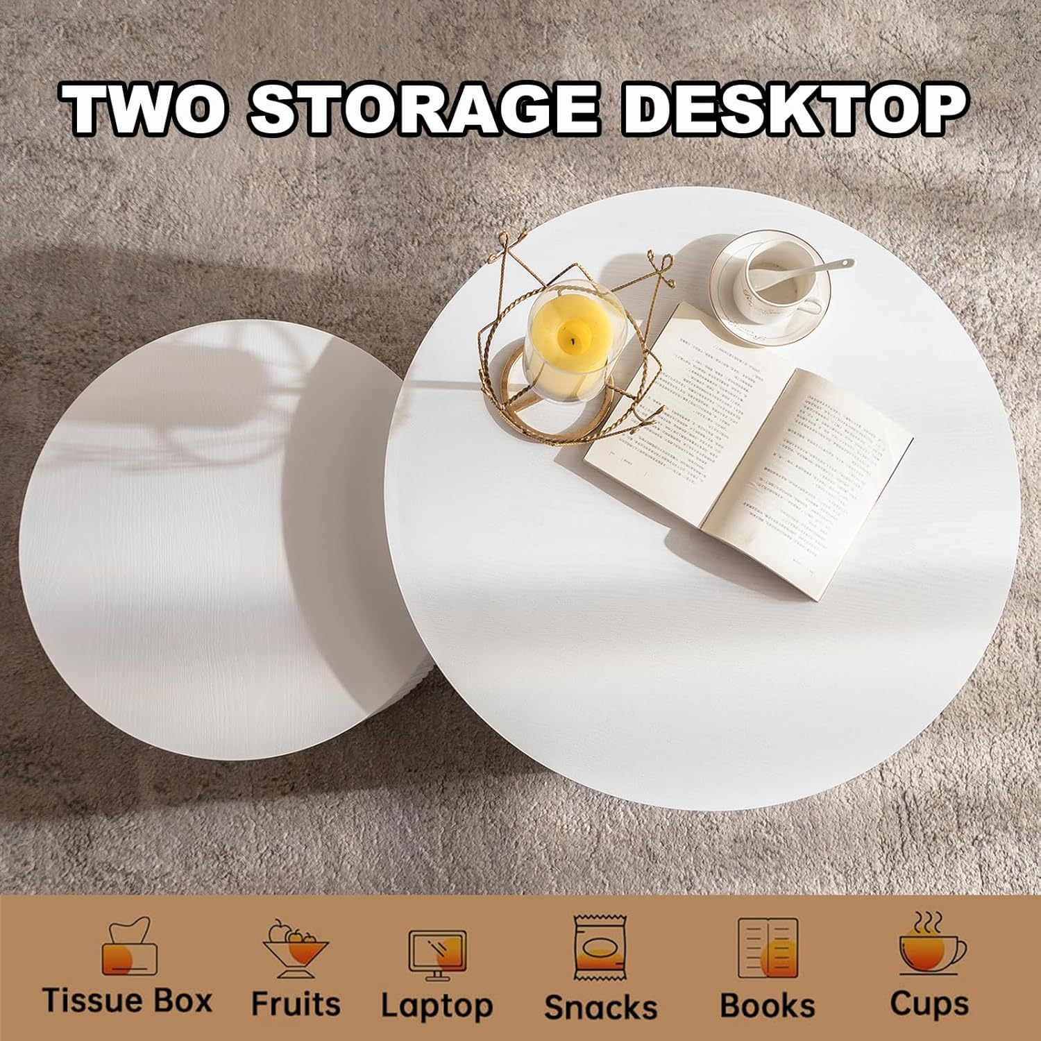 • Nesting Table Set of 2 - The circle coffee table and end table sets consists of one small round coffee table (Φ 27.56 x H 15.75 inch) and one side table living room (Φ 19.69 x H 13.78 inch), which can be arranged in multiple ways. One large and one small, with a sense of space and hierarchy