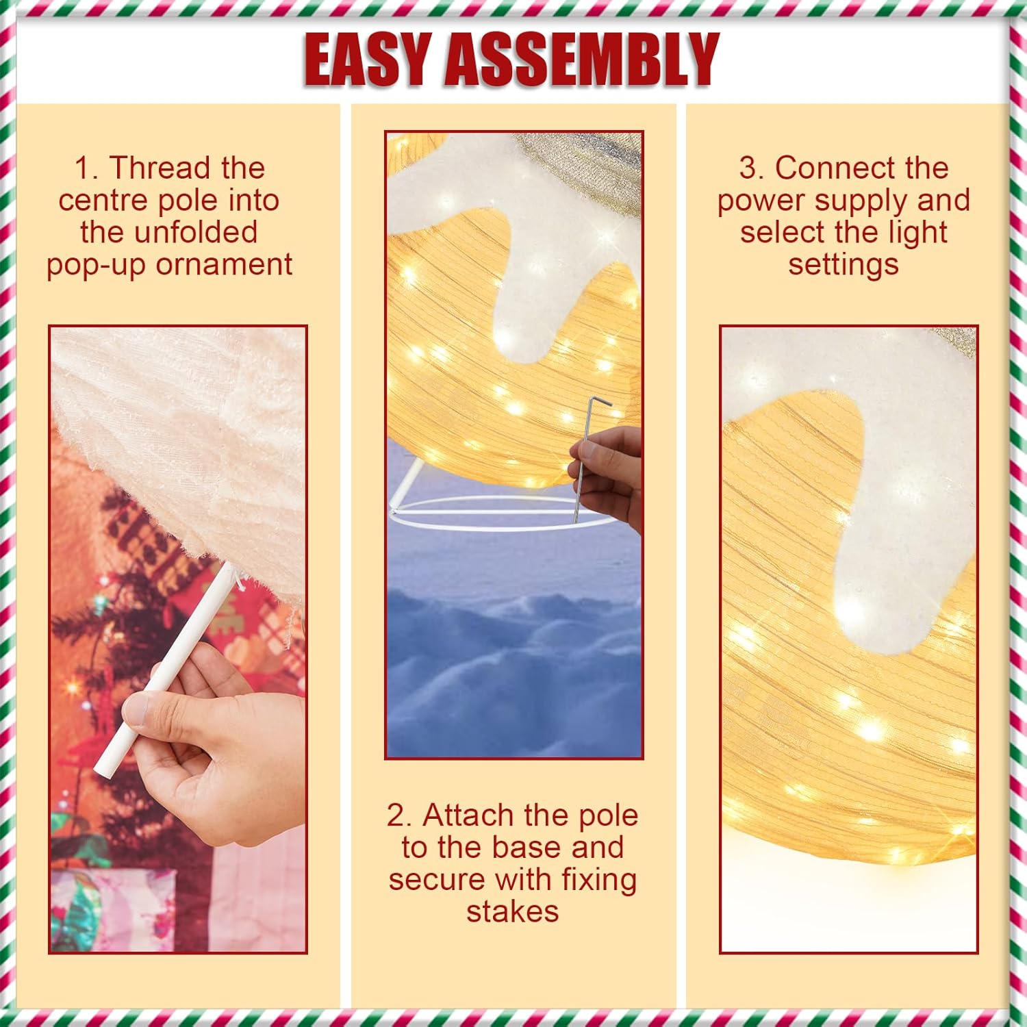 • Festive Decor: Elevate your outdoor holiday display with these large, lighted Christmas ornaments that collapse for easy storage