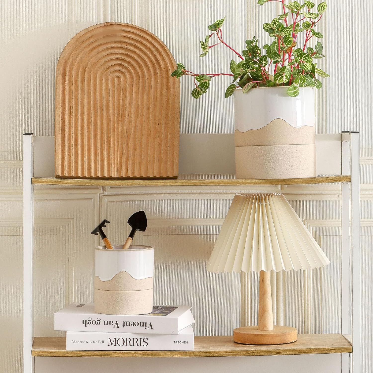 Nihow Self Watering Plant Pot for Indoor Plants: 4.5+6 Inch Ceramic Planter with Drainage Hole & Water Storage Plus - Cylinder Flower Pot with Wick for Herbs -White & Nature