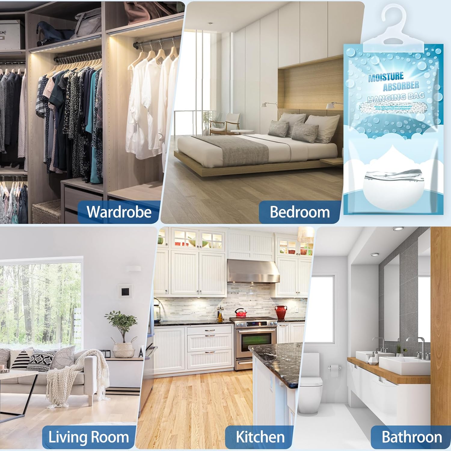 • 【Wide Use】The dehumidifier packagings is compact, making it easy to carry and store. This hanging dehumidifier bag is suitable for every space including closets, bedrooms, bathrooms, kitchens, basement. To effectively control humidity, you can adjust the number of dehumidification bags according to the size and humidity of each room.