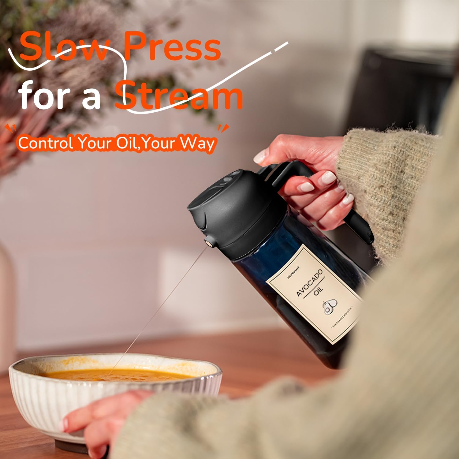 • Innovative Spray Nozzle Design: Offers precise control with a fine mist from quick presses and a steady stream from slow presses. A reliable cooking oil sprayer for all your cooking needs