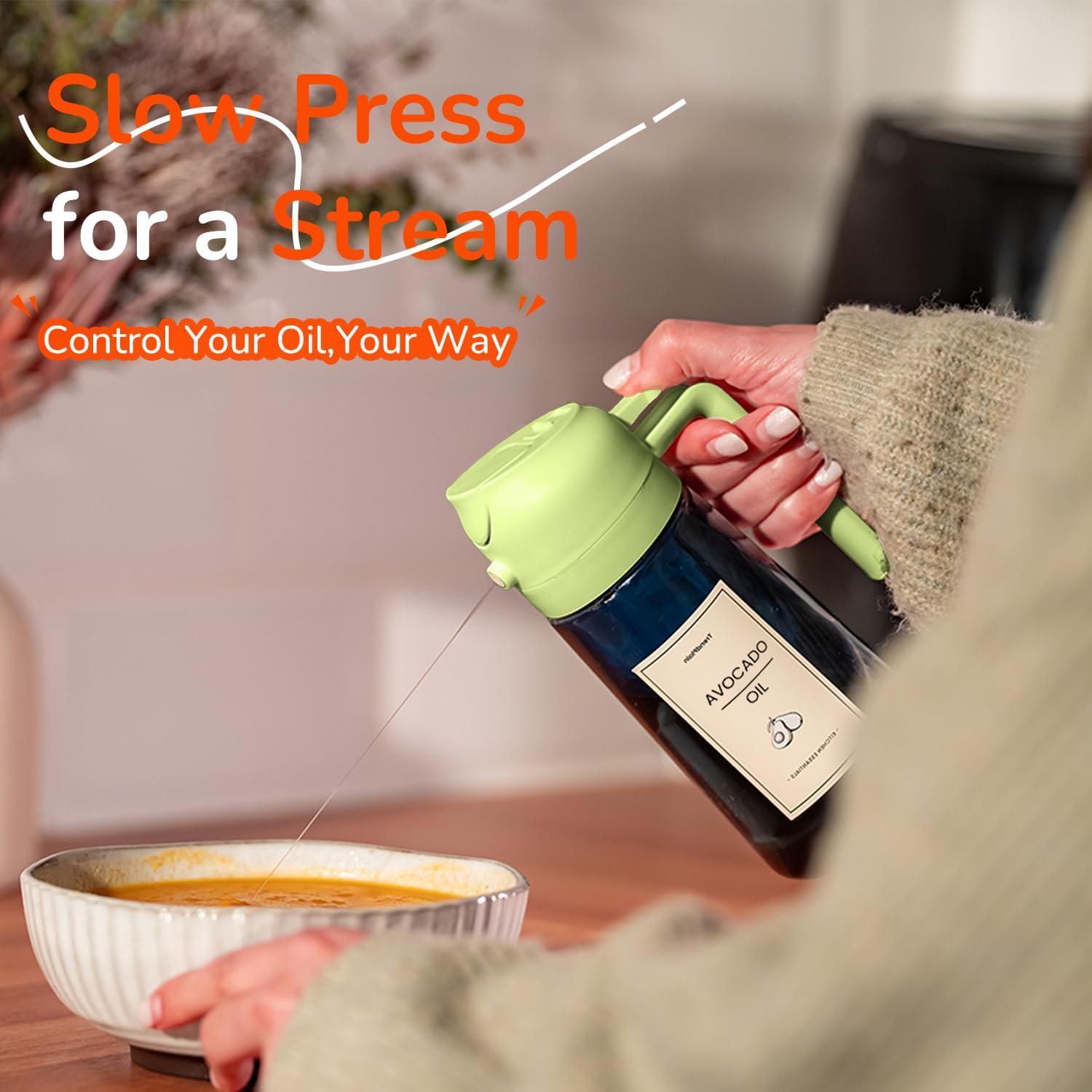 • Innovative Spray Nozzle Design: Offers precise control with a fine mist from quick presses and a steady stream from slow presses. A reliable cooking oil sprayer for all your cooking needs