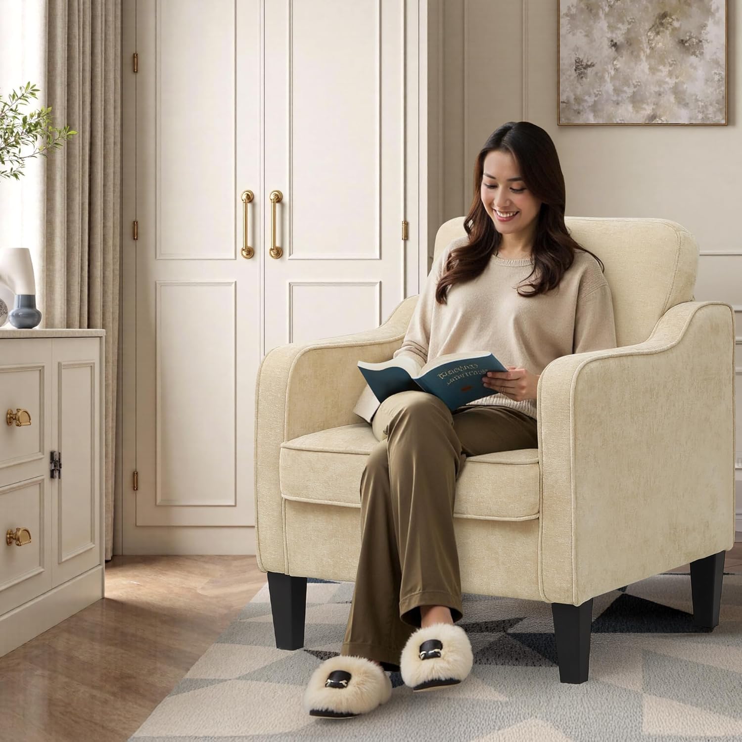 • 【Stability & Durability】This reading chair is made of soft and breathable fabric, with a solid wood frame and sturdy legs to ensure stability and durability to accompany you for many years. The bottom of the single sofa chair legs is equipped with rubber pads to prevent scratching the floor. Maximum load-bearing capacity is 350 pounds.