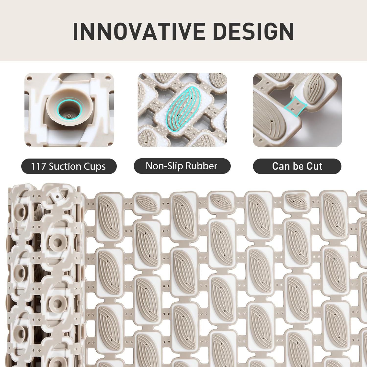 • ✅【Superior Anti-Slip Performance】Non slip bath mat for shower made from high-grip TPE+PP material with a textured surface, Our non slip shower mat features 117 powerful suction cups ensures maximum traction to prevent slips and falls, bathtub mat non slip keeping you safe in wet bathroom/bathtub or aquarium areas