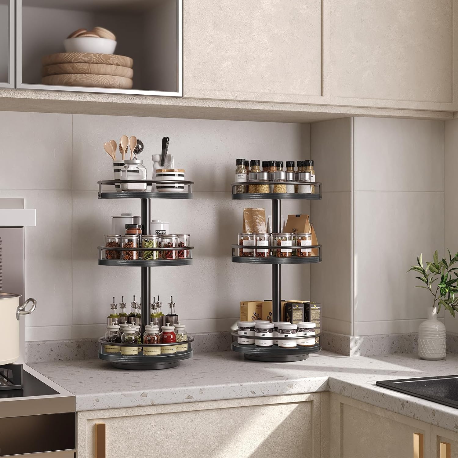 HOOBRO Lazy Susan Organizer, Rotating Spice Rack, 3-Tier Organizer, Turntable Spice Rack, Vertical Storage Organizer, for Kitchen Countertop, Vanity, Dining Table, Black BB09TL01