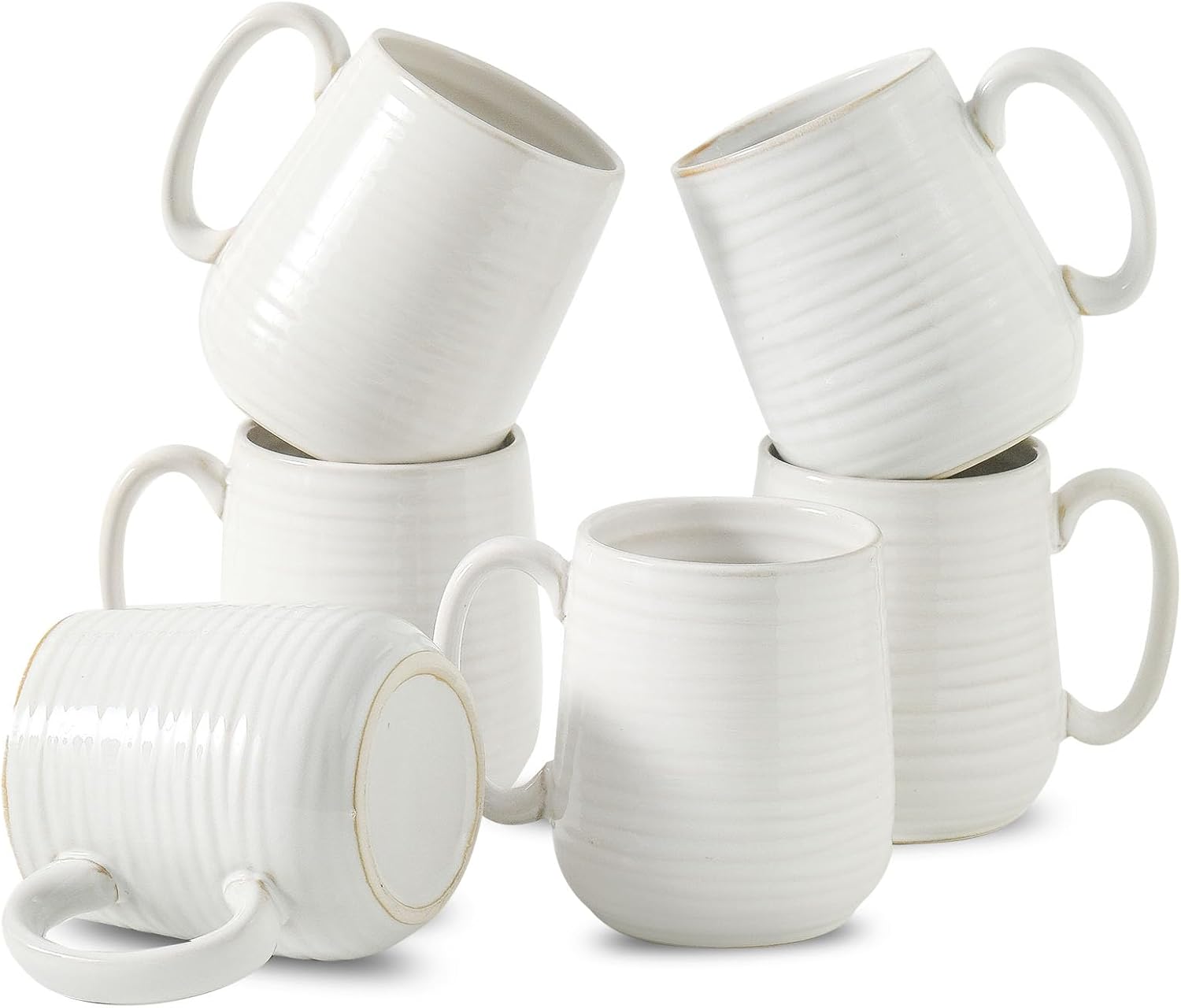Hasense Coffee Mugs Set of 6, Ceramic Coffee Cups with Handle for Home Office, 12 Ounce Tea Cup for Coffee, Latte, Hot Cocoa, Dishwasher and Microwave Safe, Clay-Infused White