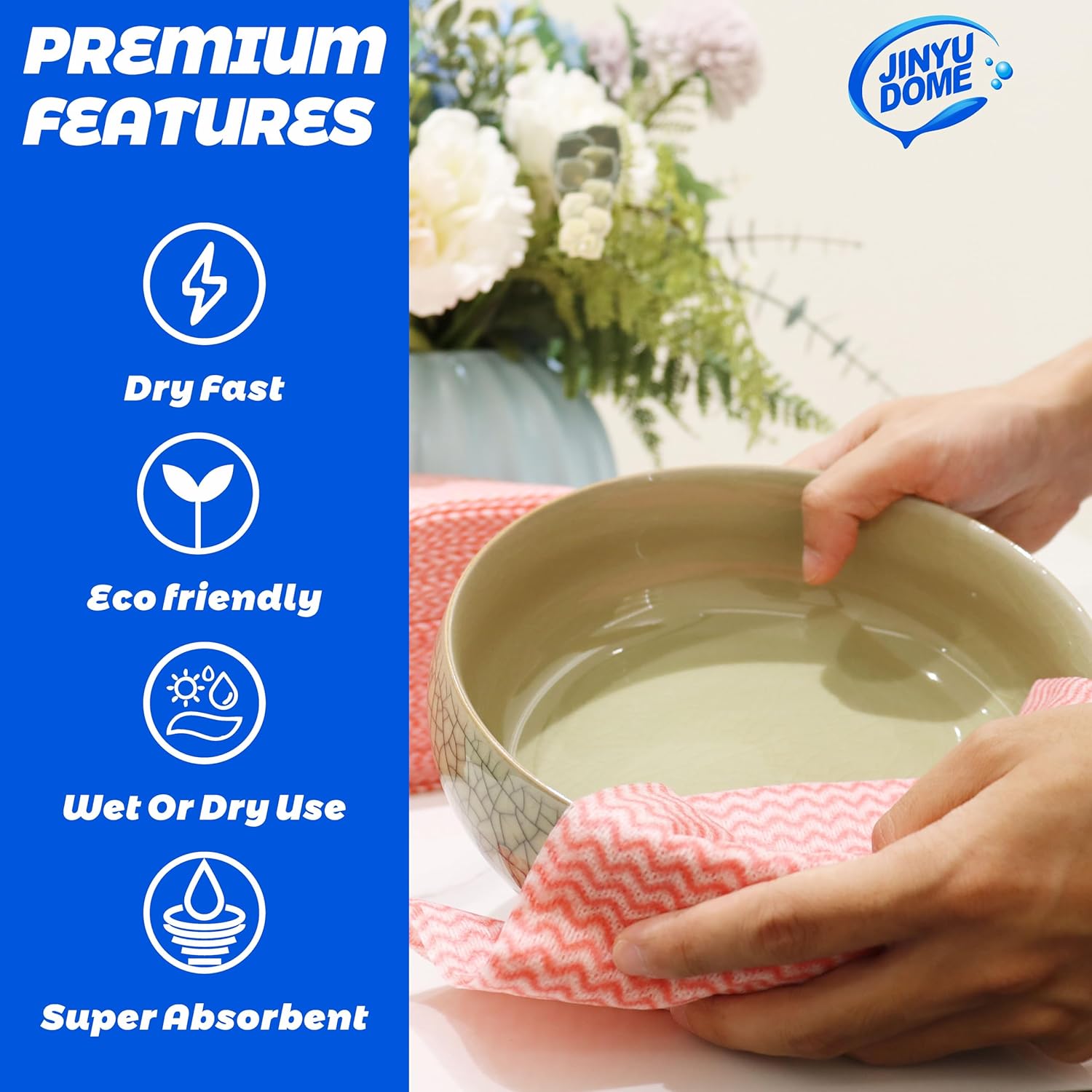 • Reusable kitchen towels made from Plant Fiber, Durable and absorbent, lint-free & no streaks
