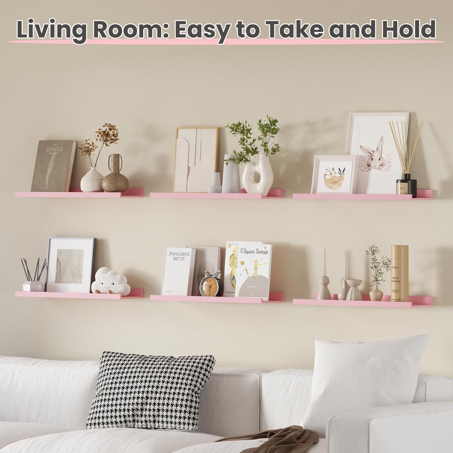 upsimples Pink Shelves for Wall, Kawaii Room Decor for Teen Girls, Bedroom, Living Room, Game Room, 6 Pack 23.6 inch Long Wall Mounted Wood Shelves for Picture, Plants