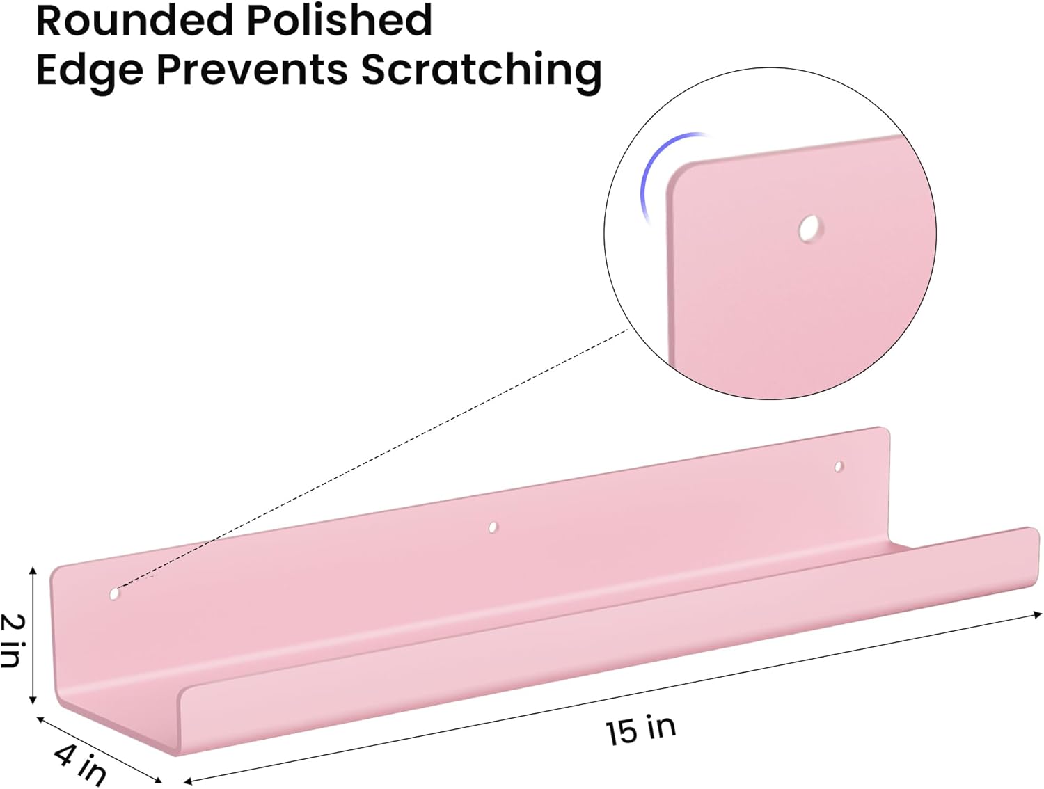 upsimples Acrylic Shelves for Wall Decor, 15" Display Shelf Perfume Organizer for Bathroom, Bedroom, Living Room, Floating Bookshelves for Kids, Pink, 4 Pack