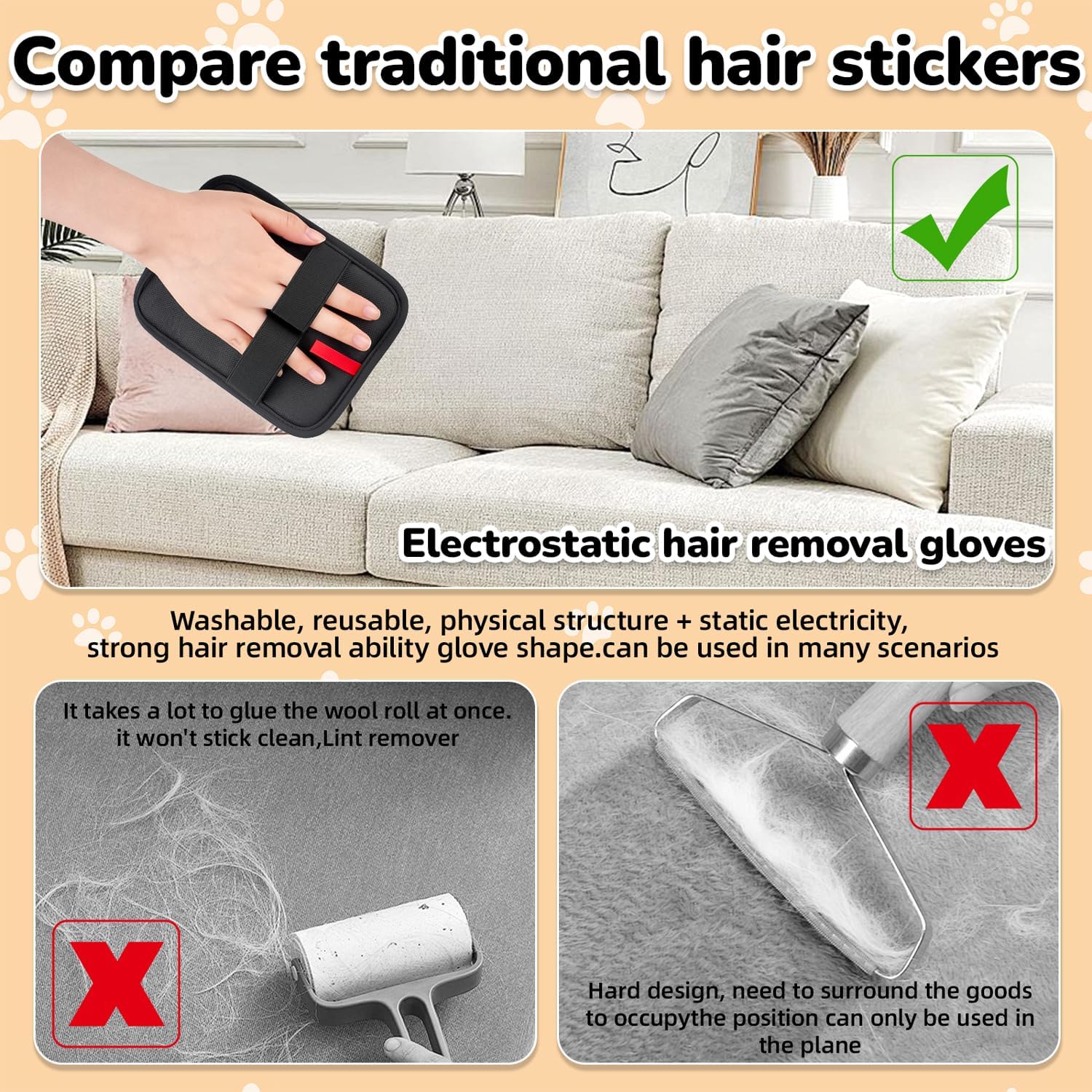 • High-efficiency cleaning, time and labor-saving: Cat hair gloves specially designed for large-scale cleaning! The dense electrostatic adsorption material quickly captures pet hair like a magnet, and wherever it goes, it becomes as clean as new immediately. Whether it's a fabric sofa covered with dog and cat hair or a long-haired carpet that's prone to dirt and grime, they can all be cleaned with just a swipe, allowing pet families to bid farewell to the hassle of daily cleaning and enjoy an efficient and convenient cleaning experience.