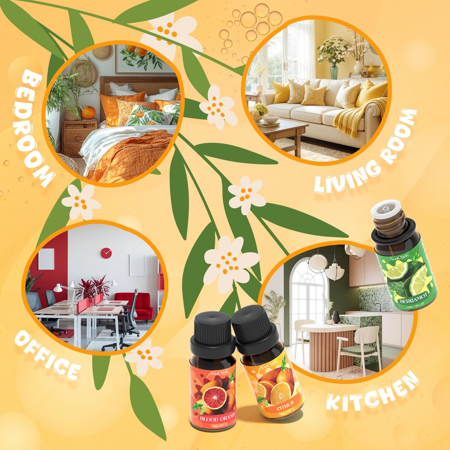 • Mood-Boosting Energy: Each citrus essential oil in our collection is carefully chosen for its mood-enhancing properties. Whether you're diffusing Lemon to inspire focus or Bergamot to ease tension, these zesty oils bring an energizing, sunlit atmosphere to your home or workspace.