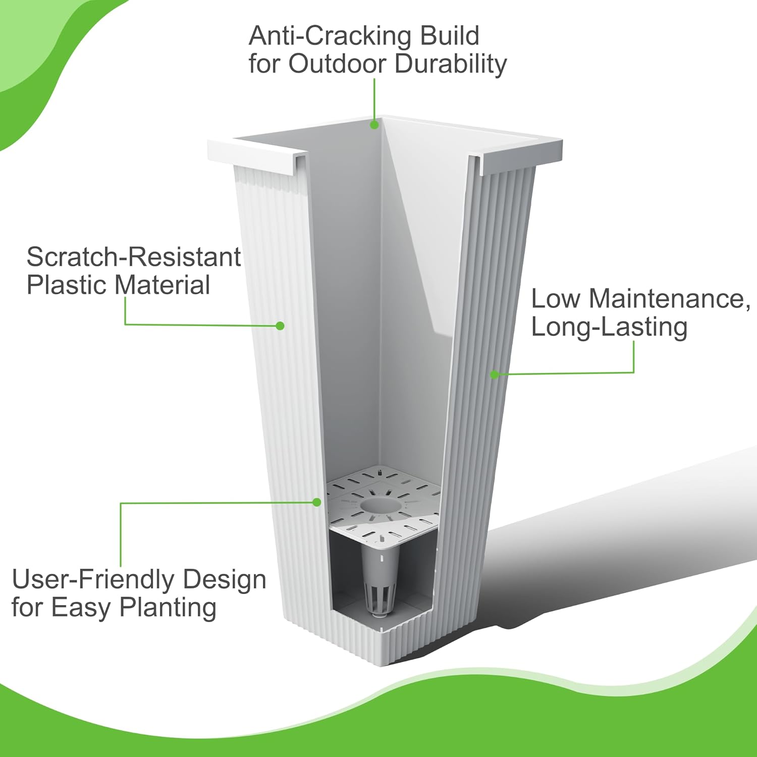 • Built to Endure All Weather Conditions: Crafted from premium, weather-resistant plastic, these tall planters for outdoor plants are designed to resist cracking, fading, and damage from the sun, rain, and snow. Perfect for any season, these large planters for outdoor plants ensure long-lasting durability, making them an excellent choice for outdoor and indoor gardening alike.