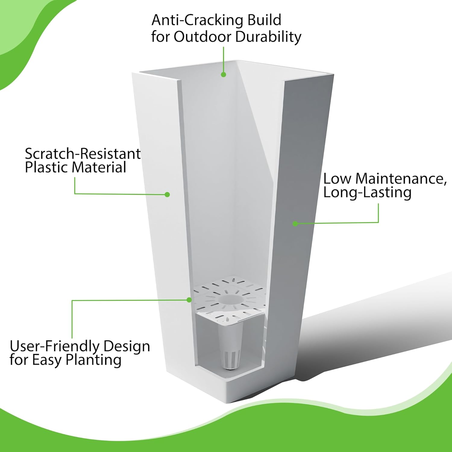 • Built to Endure All Weather Conditions: Crafted from premium, weather-resistant plastic, these tall planters for outdoor plants are designed to resist cracking, fading, and damage from the sun, rain, and snow. Perfect for any season, these large planters for outdoor plants ensure long-lasting durability, making them an excellent choice for outdoor and indoor gardening alike.