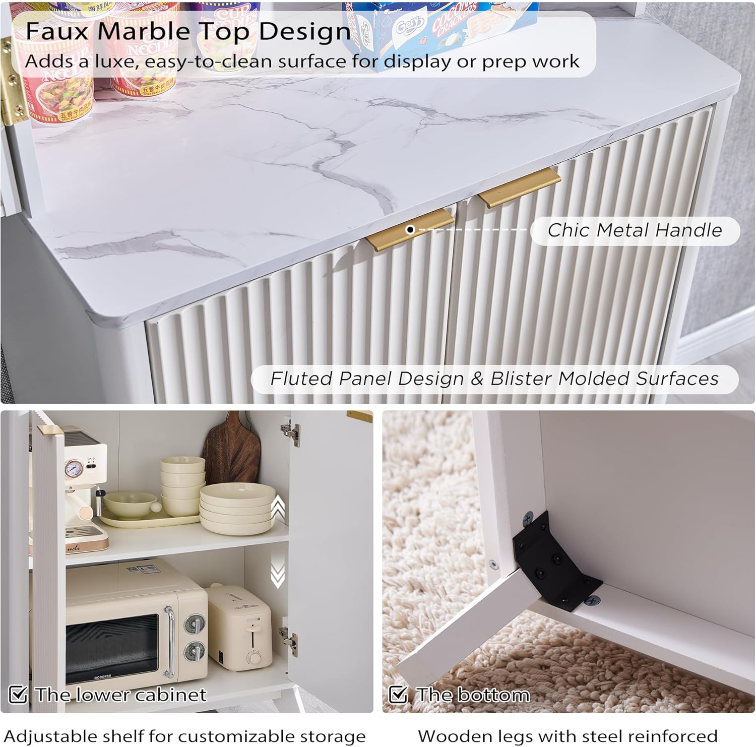 OKD Fluted Kitchen Pantry, 72" Tall Mid Century Modern Storage Cabinet with Adjustable Shelves & Door Organizer, Wood Cabinet for Kitchen, Living Room, Solid White