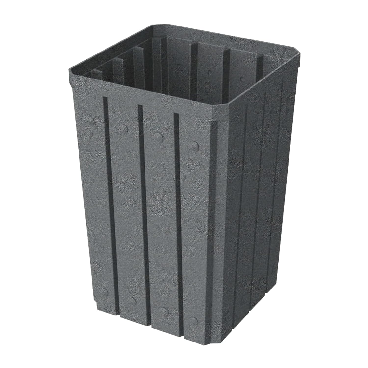 32 Gallon Square Slatted 100% Recycled Plastic Heavy-Duty Commercial Outdoor or Indoor Trash Can with Push Top Lid | Great for Schools and Businesses - Dark Granite