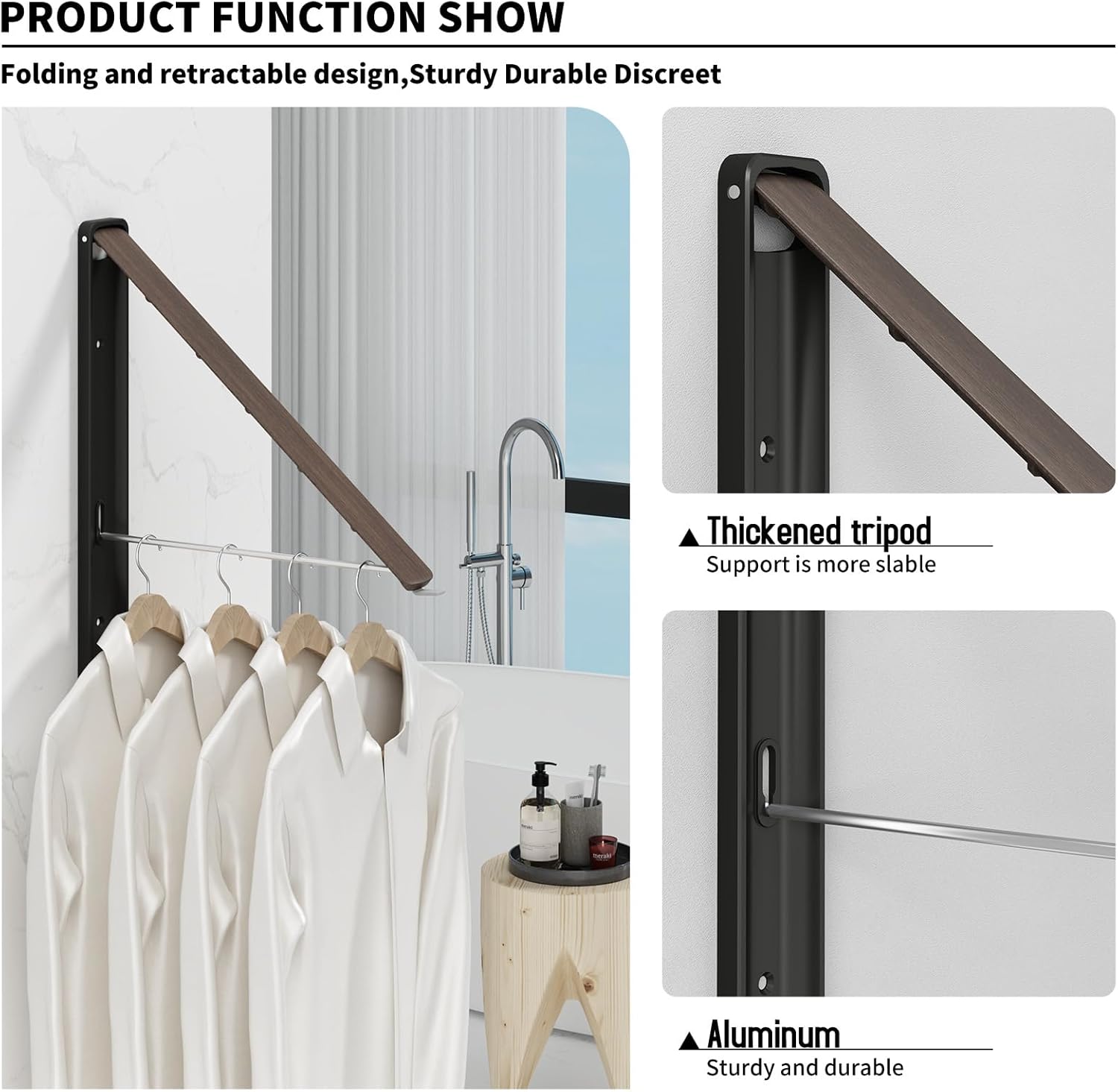 • 【Multifunctional Folding Clothes Rack】The retractable drying rack can be opened from the wall. Our clothes racks are specially designed to fold when not in use. The drop down drying rod creates instant hanging space for guest rooms, dorm rooms, laundry rooms, offices or break rooms