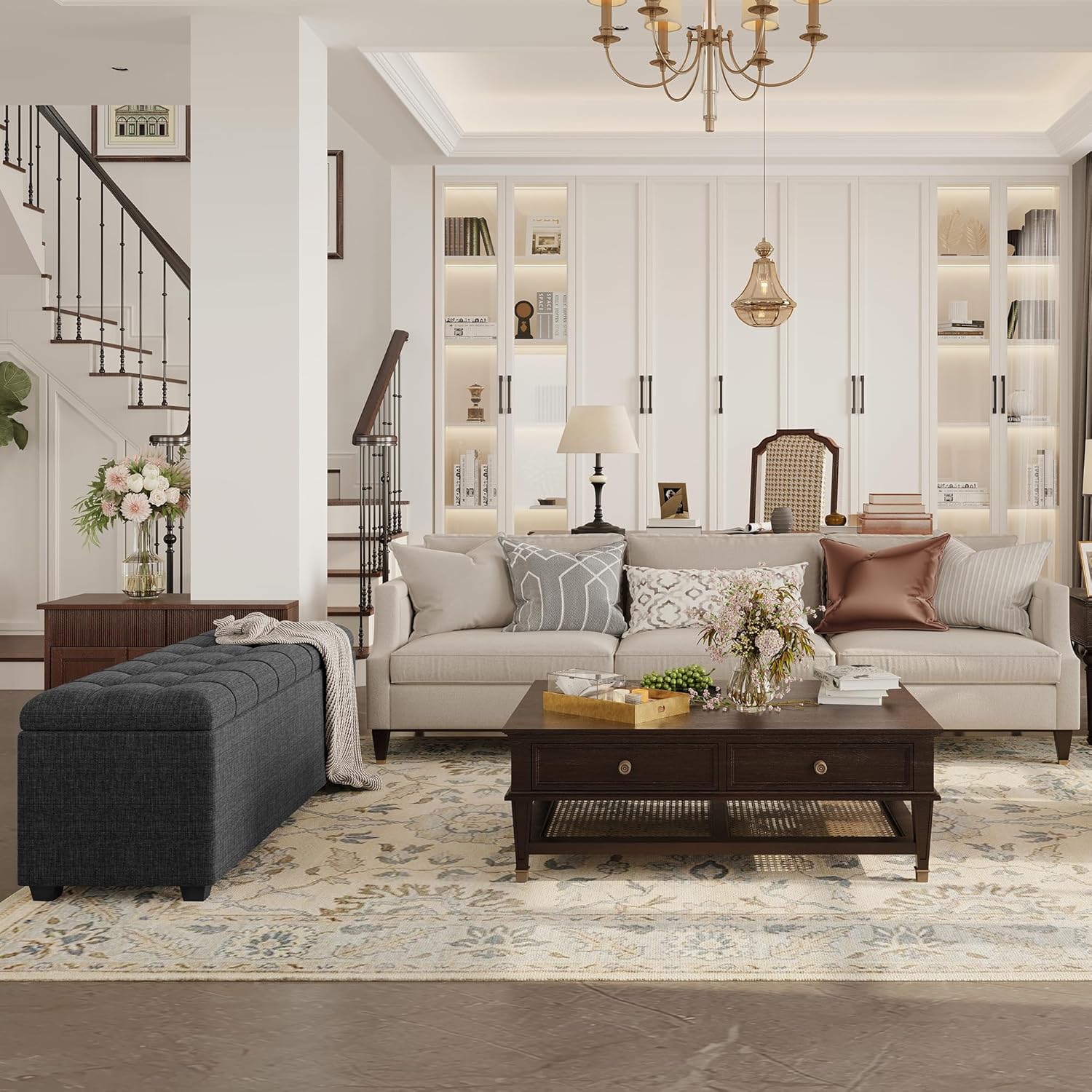 • 【 Easy Assembly & maintenance 】 4 legs assembly required only when it comes to set up this modern bed storage trunk.Linen surface is resistant to dirt and easy to maintain. If it gets dirty, It can be easily wiped clean with a damp cloth