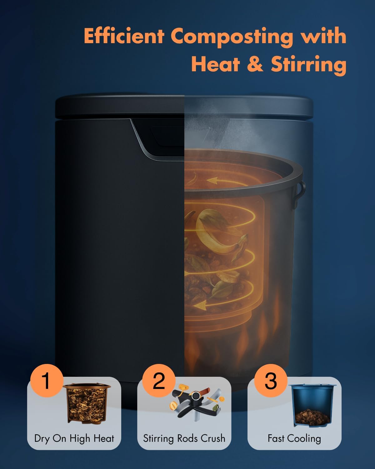 • Cleaner & Sustainable: Turn food scraps into nutrient-rich compost and enrich your garden while reducing waste and minimizing your carbon footprint. aGratHav’s electric composter helps you contribute to a greener, cleaner planet—one compost batch at a time!