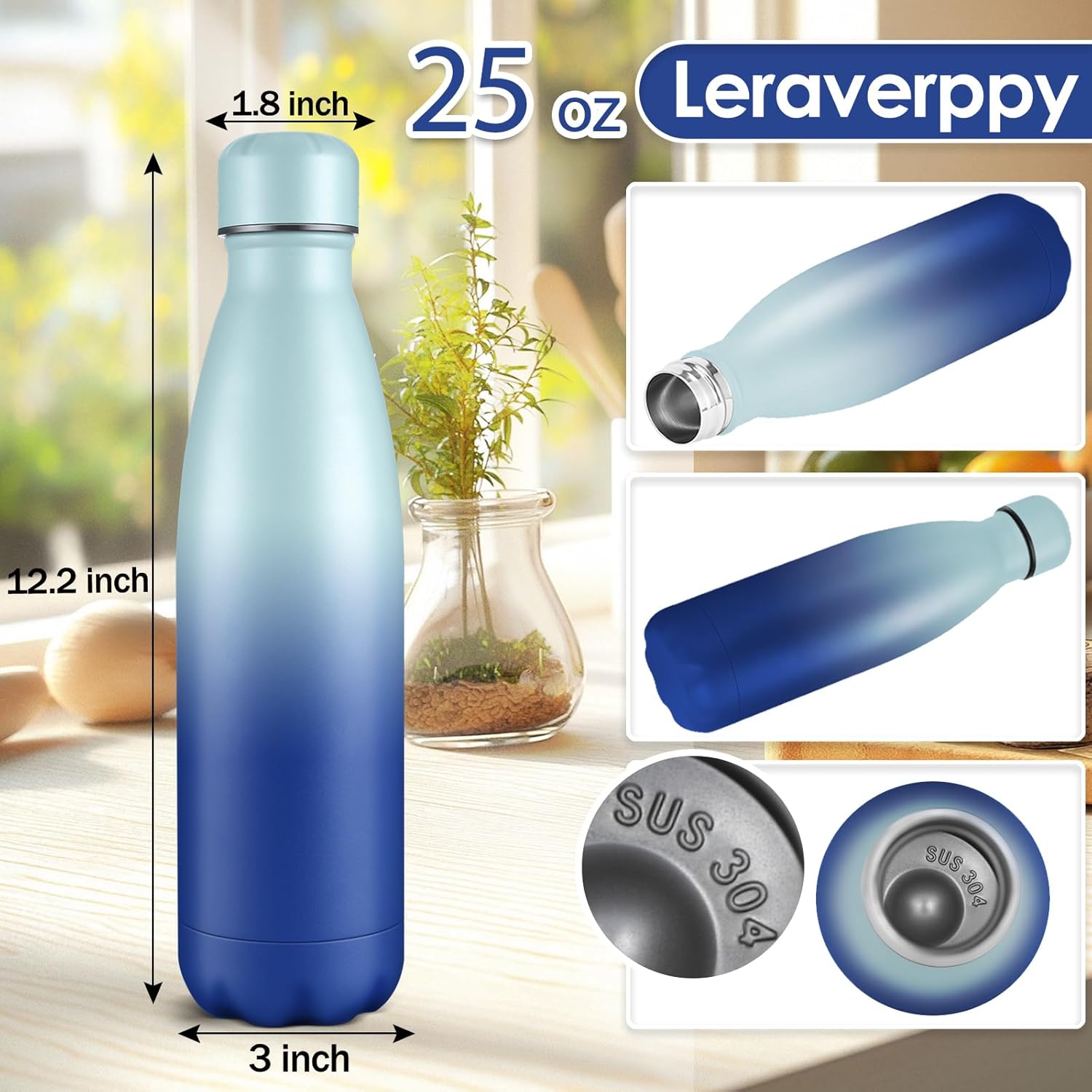 25oz Cola-Bottle Shaped Stainless Steel Leak-proof Water Bottle,Double Wall Vacuum Insulated Metal,Travel Mug For Sports Indoors & Outdoors,BPA-Free Kids Flasks,Green Blue(1 Pack)