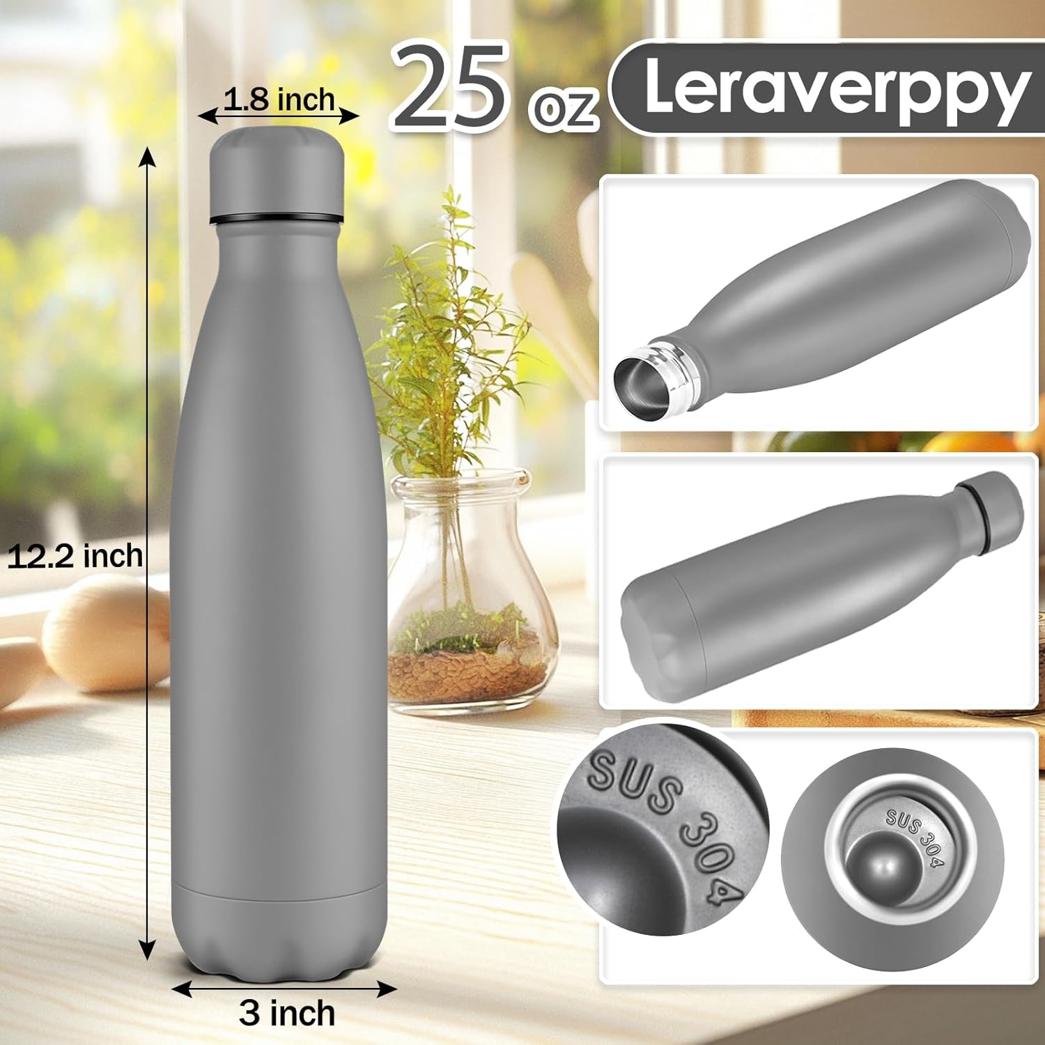 25oz Cola-Bottle Shaped Stainless Steel Leak-proof Water Bottle,Double Wall Vacuum Insulated Metal,Travel Mug For Sports Indoors & Outdoors,BPA-Free School Kids Flasks,Gray(2 Pack)