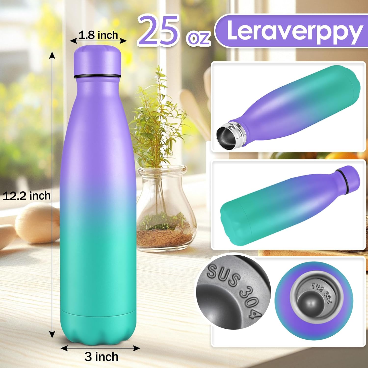 25oz Cola-Bottle Shaped Stainless Steel Leak-proof Water Bottle,Double Wall Vacuum Insulated Metal,Travel Mug For Sports Indoors & Outdoors,BPA-Free Kids Flasks,Purple Green(4 Pack)