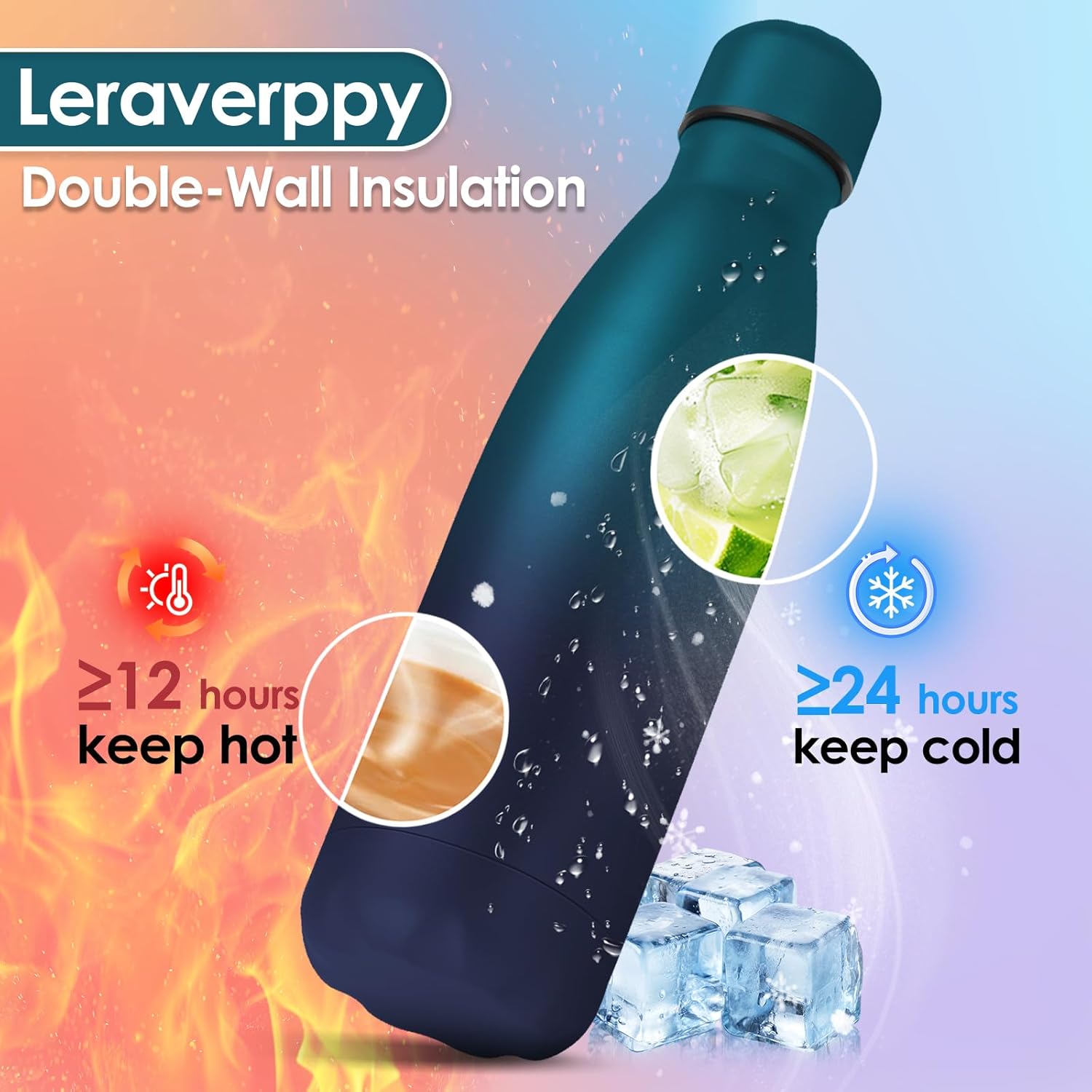 • 《Double Wall Vacuum Metal Bottle and Amazing Gift》This insulated water bottle is double walled and vacuum sealed,which keeping them ice cold for 24 hours and steaming hot for 12 hours.With healthy and reusable stainless steel,our durable everyday water bottle is suitable for everyday use and also as an amazing gift for yourself or your partners friends family colleagues employees teachers etc.