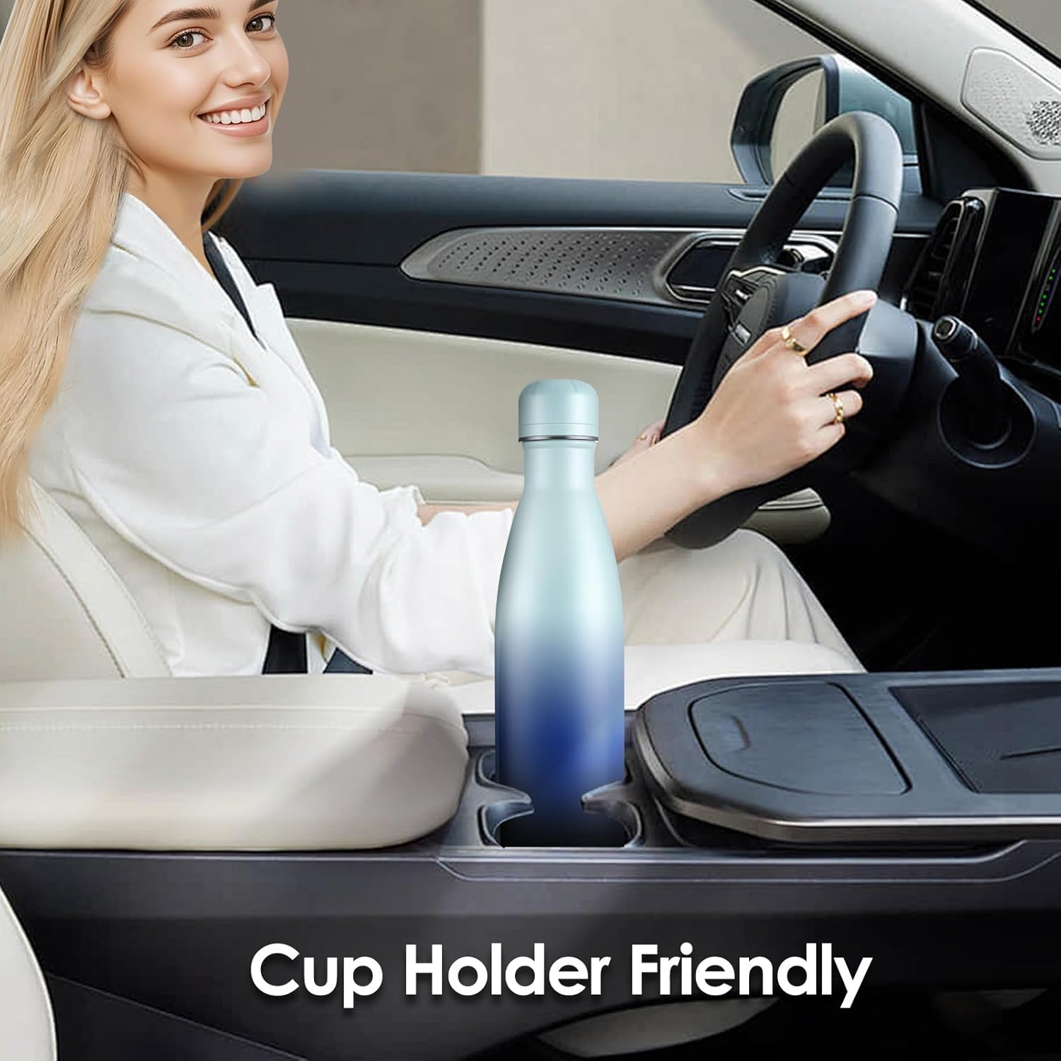 • 《Portable Size and Wide Use》17oz insulated water bottle is the good size for kids and adults.With a portable lid and light weight so you can carry it anywhere with ease.The Convenient bottle is the good choice for the bike or car cup holder,side pockets of backpack,gym,school,work,camping hiking biking beach trips,picnics and any other indoor or outdoor activity.